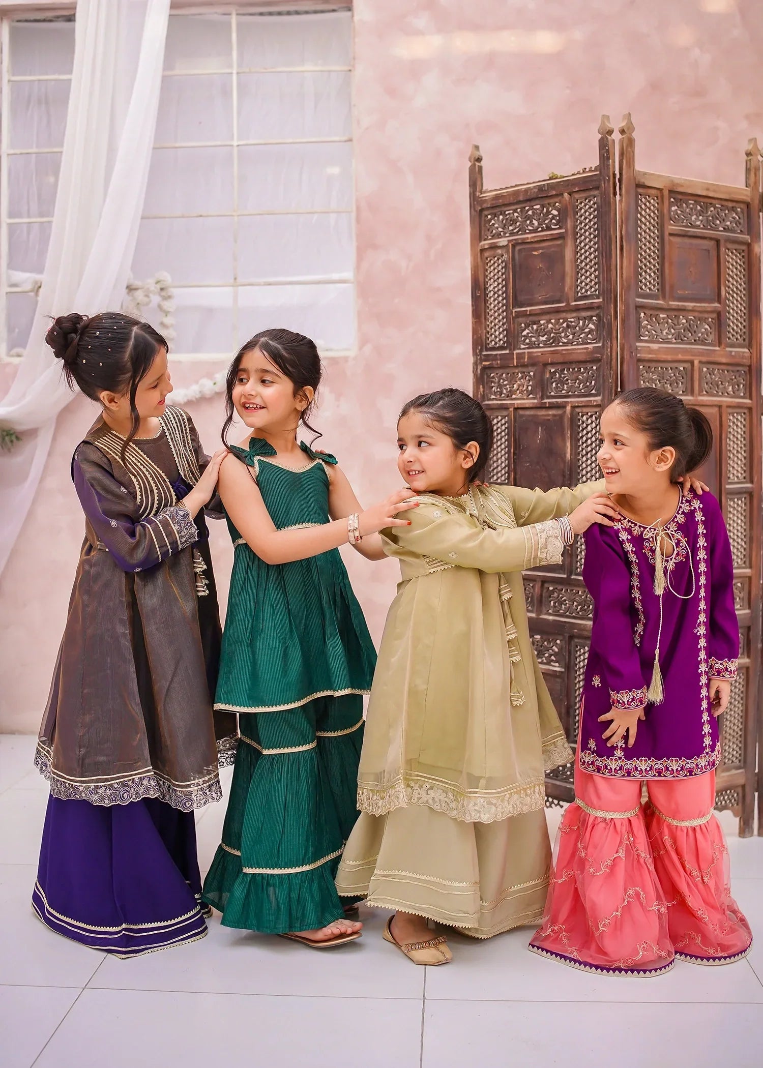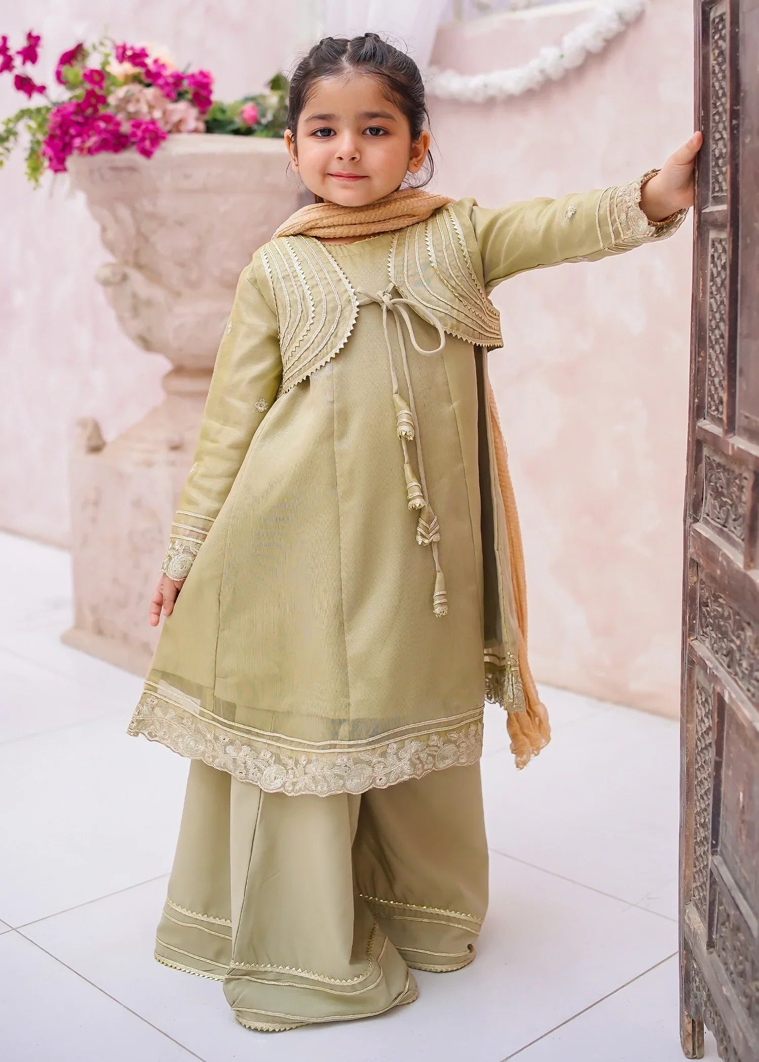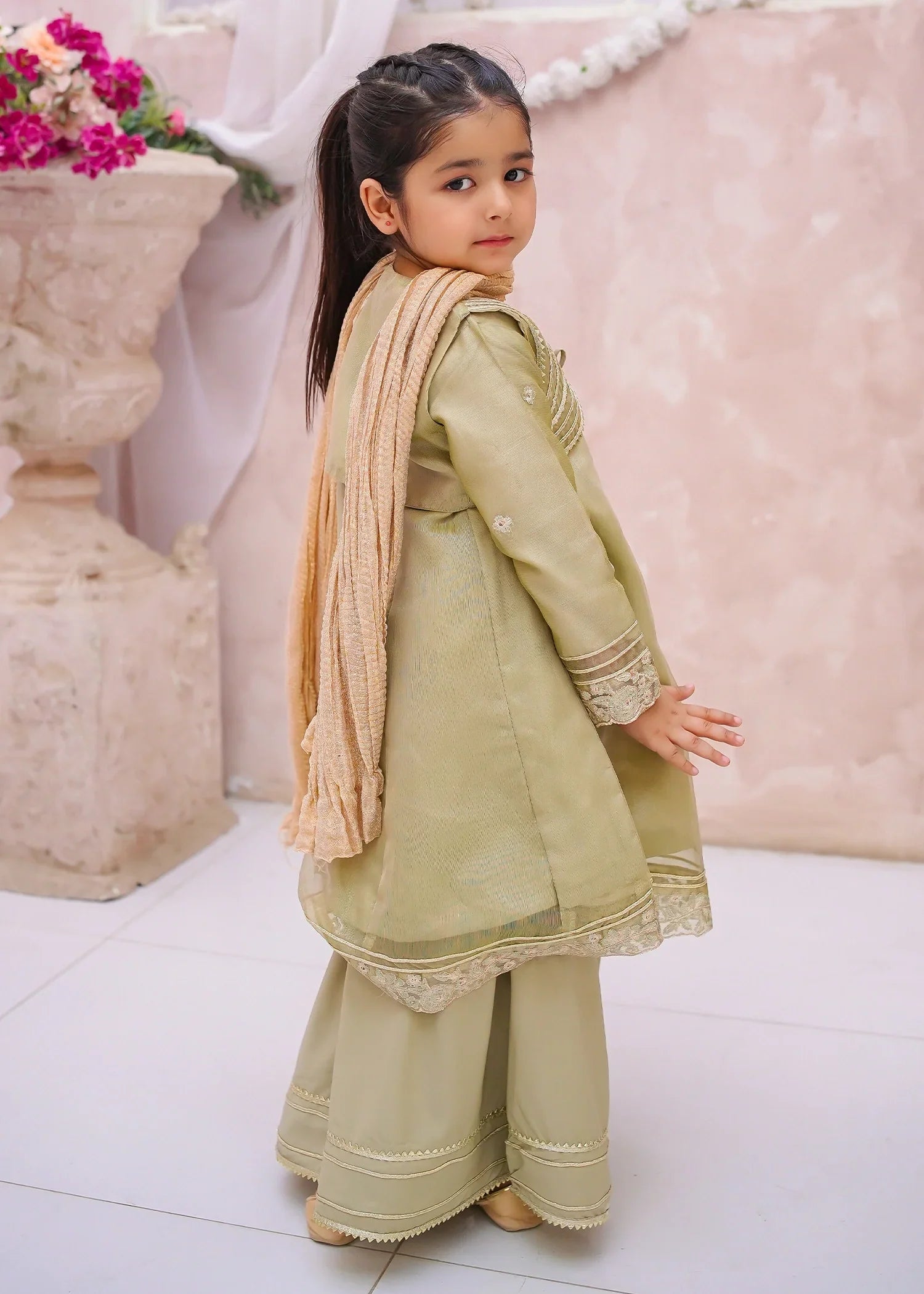 Bottom: Olive Green Maysuri plain straight gharara