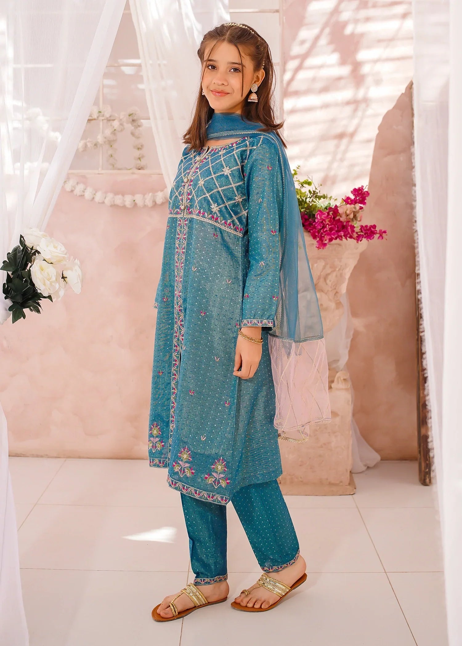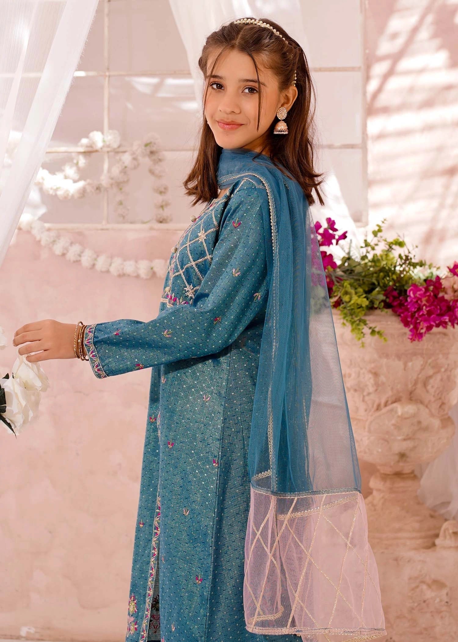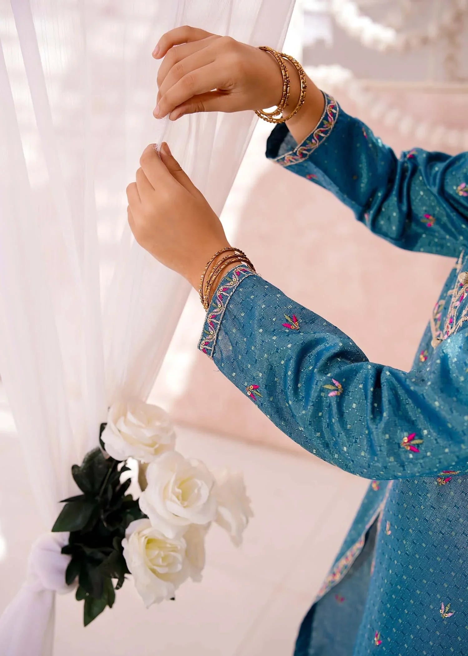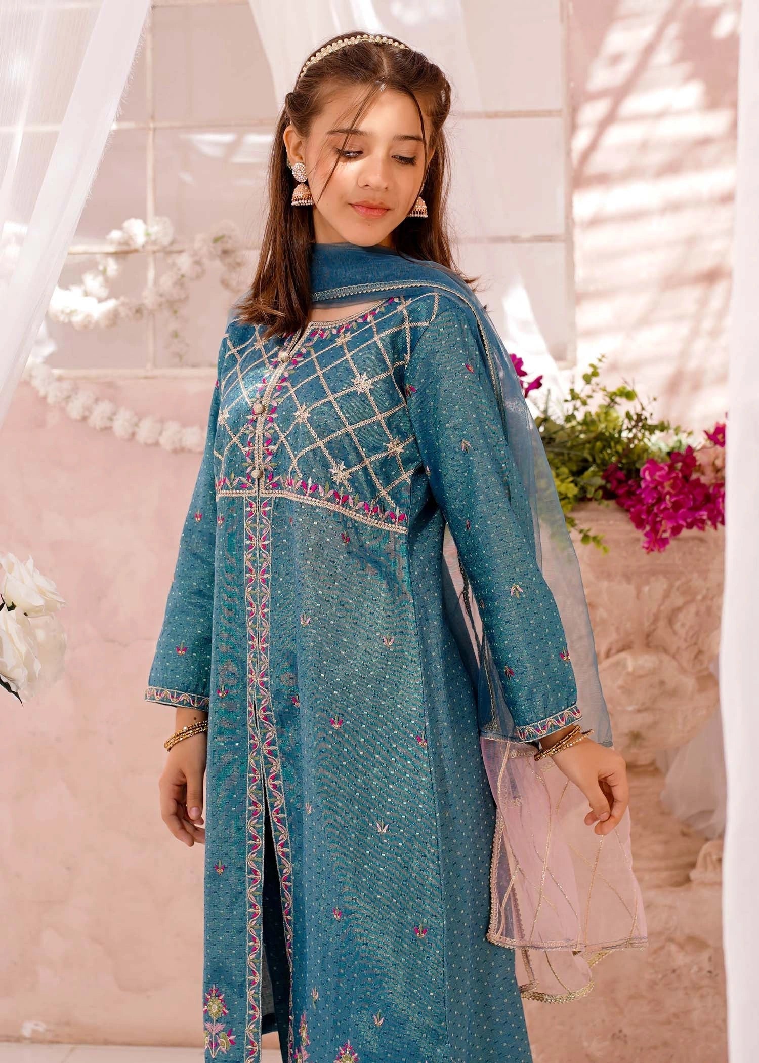 Bottom: Blue cotton lawn embroidered straight trouser