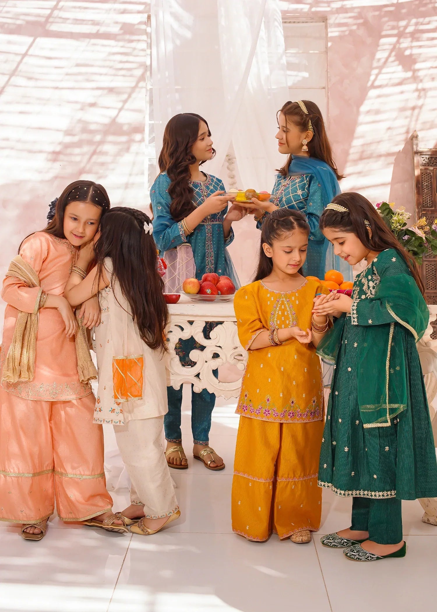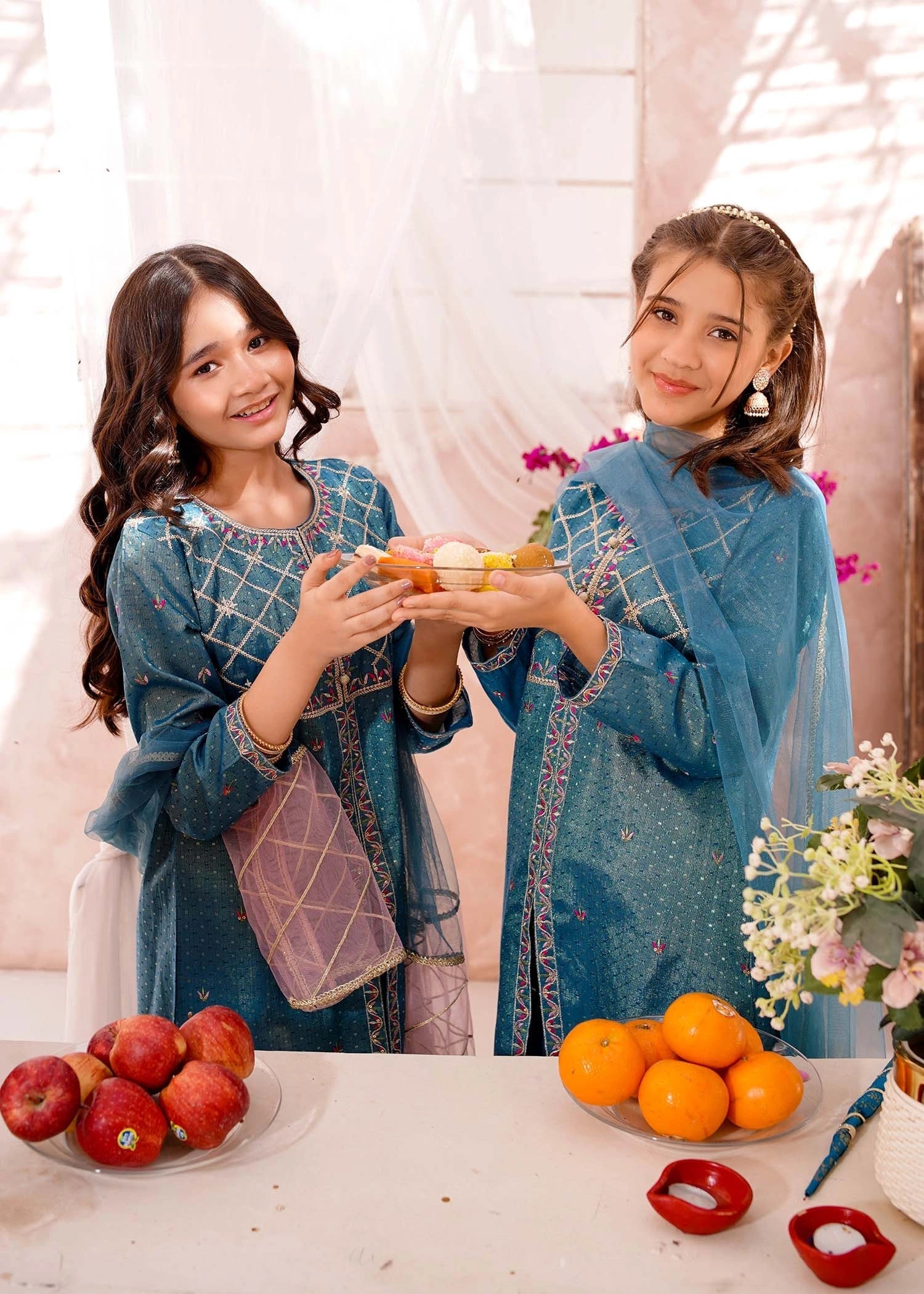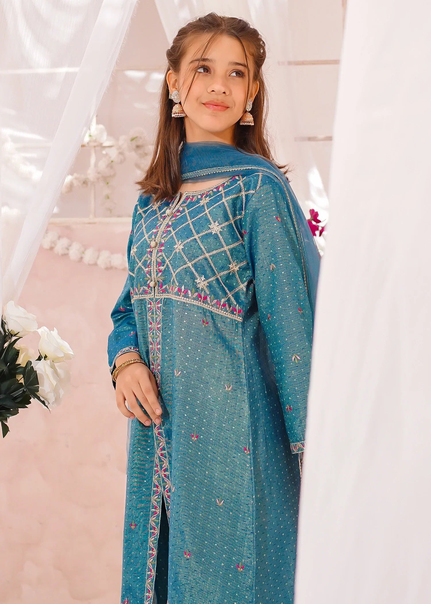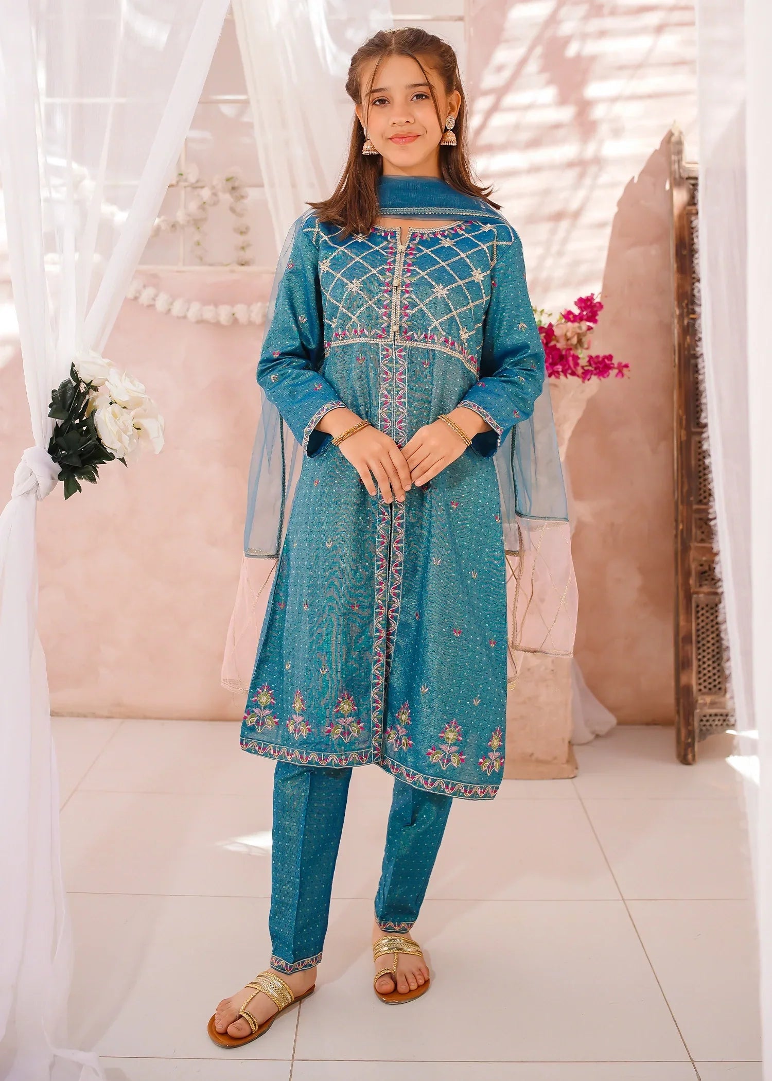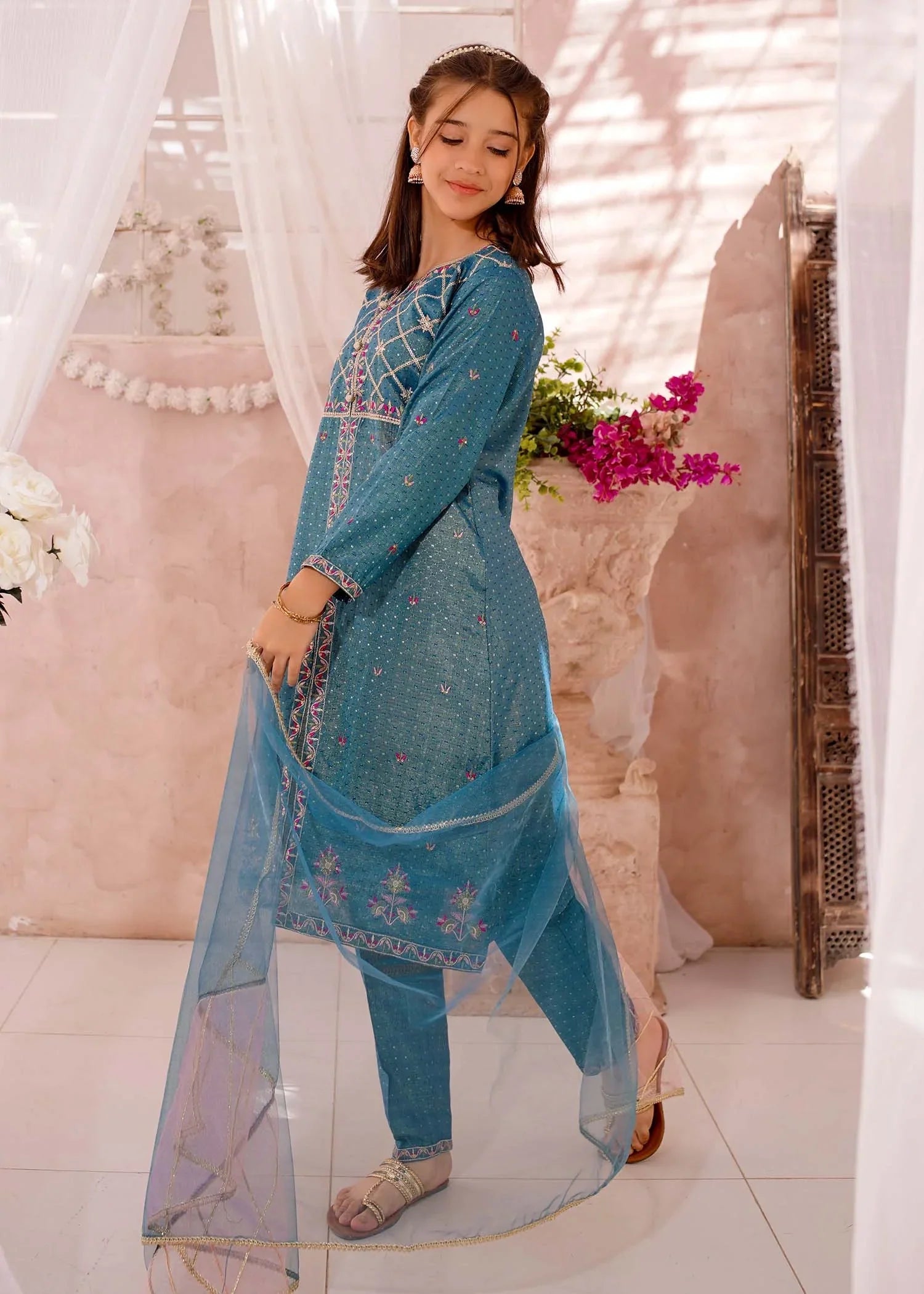 Bottom: Blue cotton lawn embroidered straight trouser