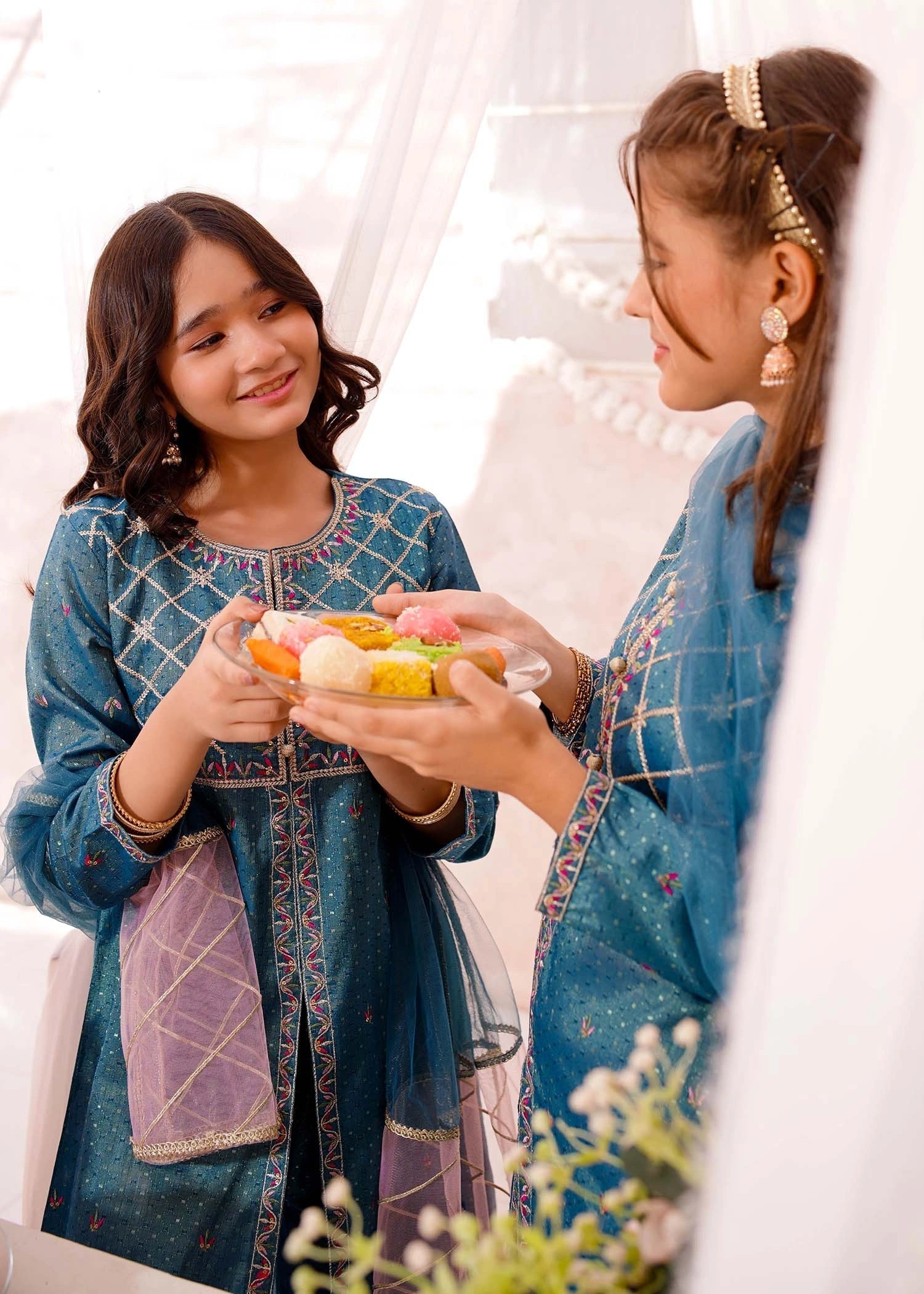 Dupatta: Blue net dupatta