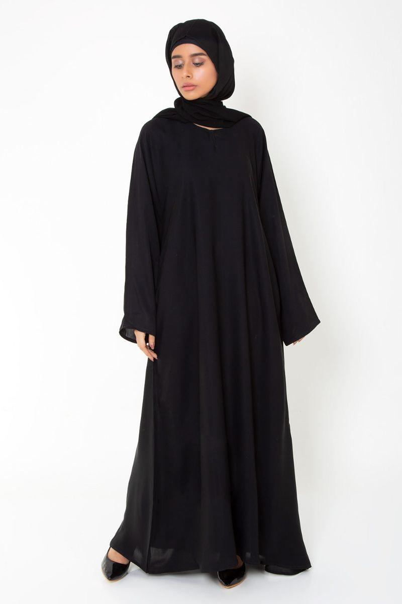 Product Features: Front-closed Abaya, Straight simple sleeves and Round neck.