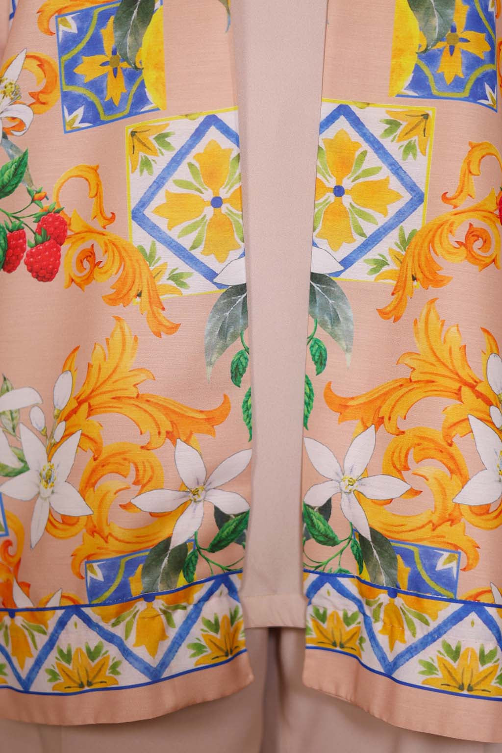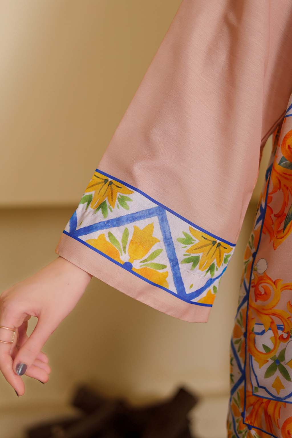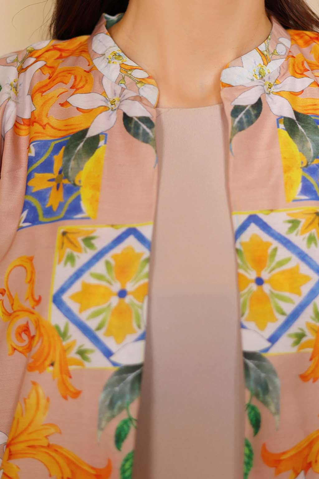 Bring fresh elegance to your wardrobe with the Vanilla Shrug from Adwears SELENE Collection. This 3-piece set, crafted from breathable Premium Cambric, includes a floral-printed shrug, inner, and trouser. The shrug features a front-open contour, full-length sleeves, and a straight hem. With its vanilla base and vibrant floral detailing, it’s a versatile piece that blends effortless sophistication with everyday comfort.