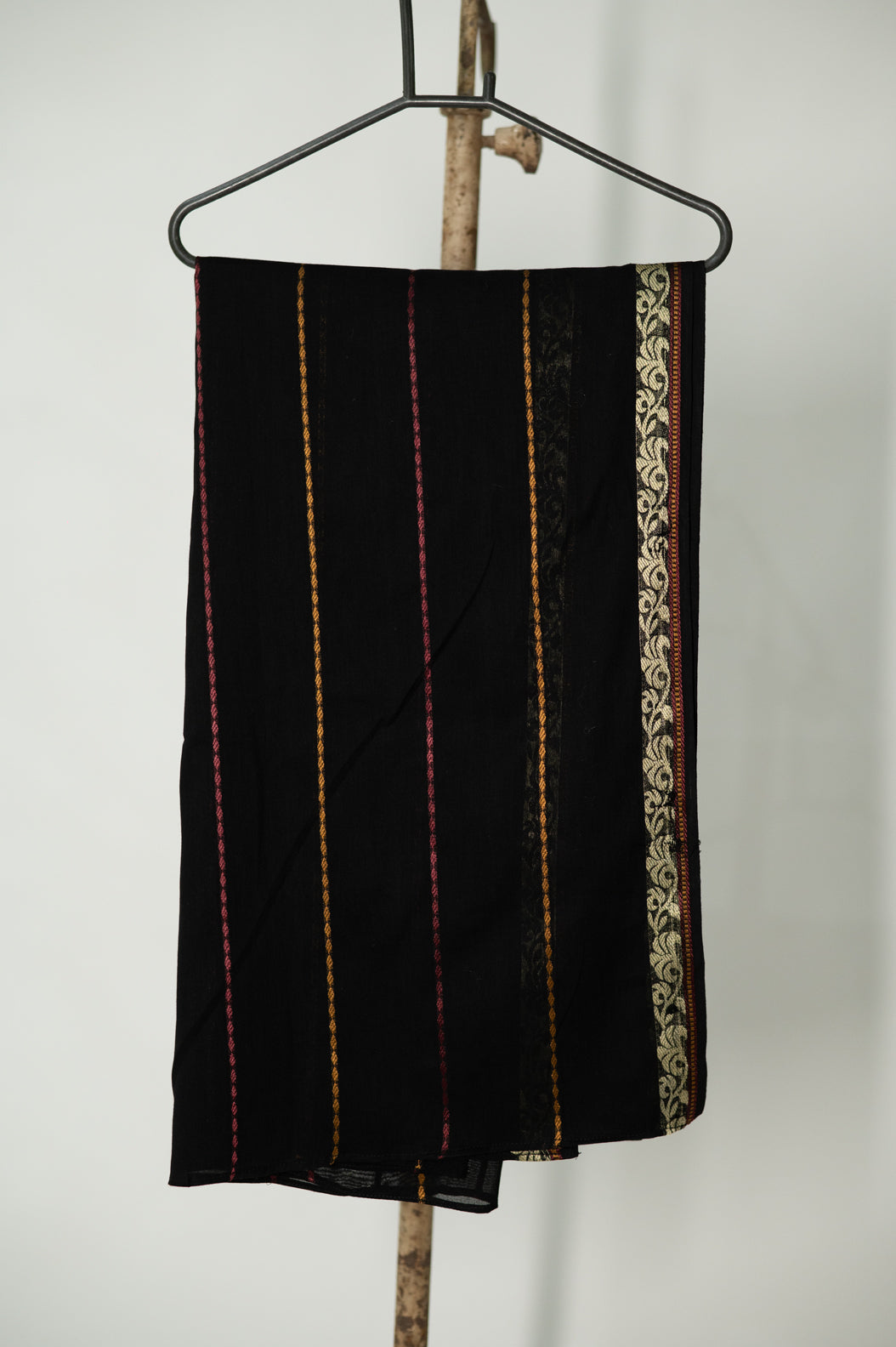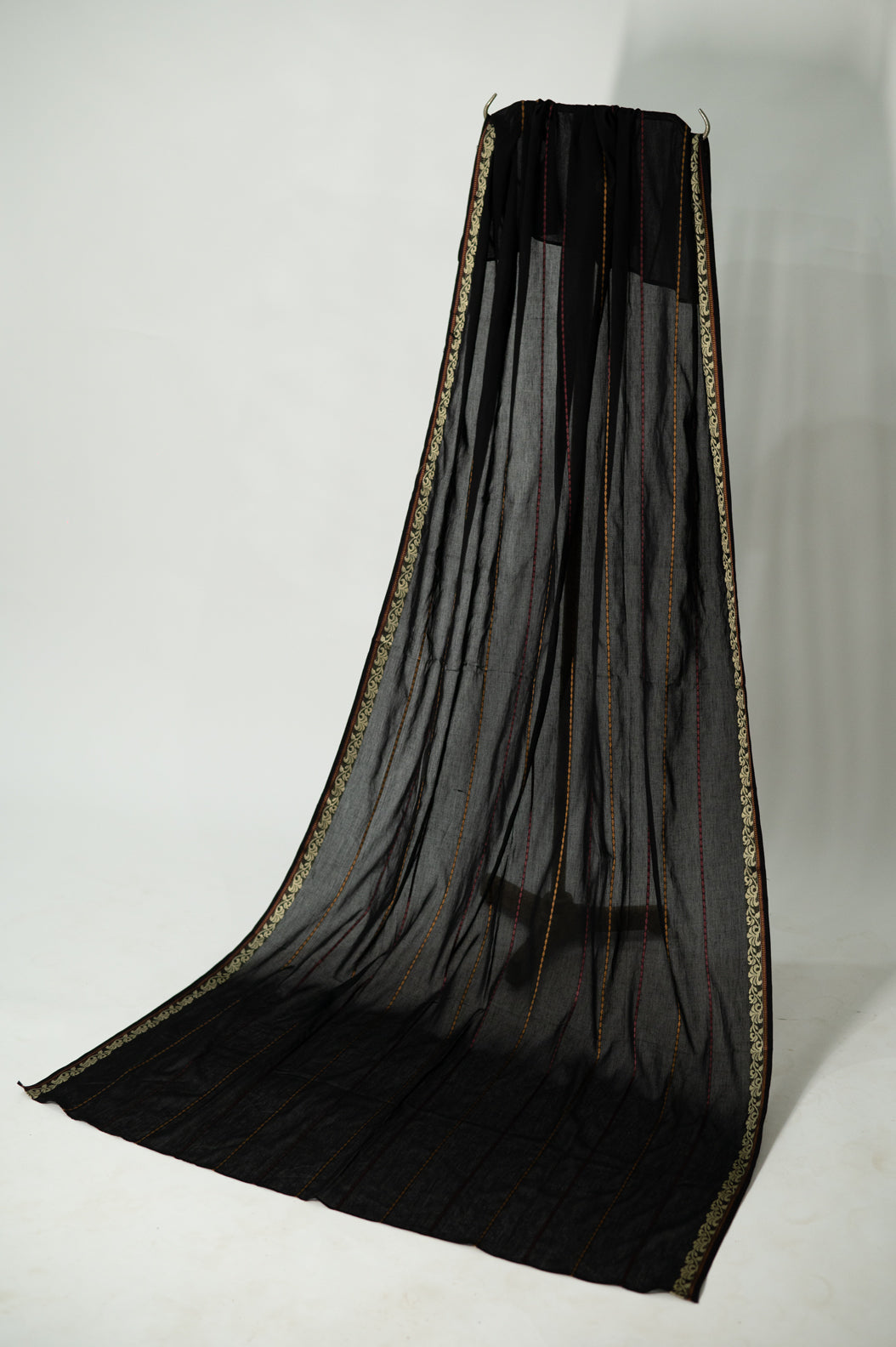 Beautiful Balck cotton dopatta with Gold thread work borders. Disclaimer * The fabric pattern/laces, patchwork/emblishment, and handmade details may vary * * Product color may vary due to lighting, screen pixel and color settings.