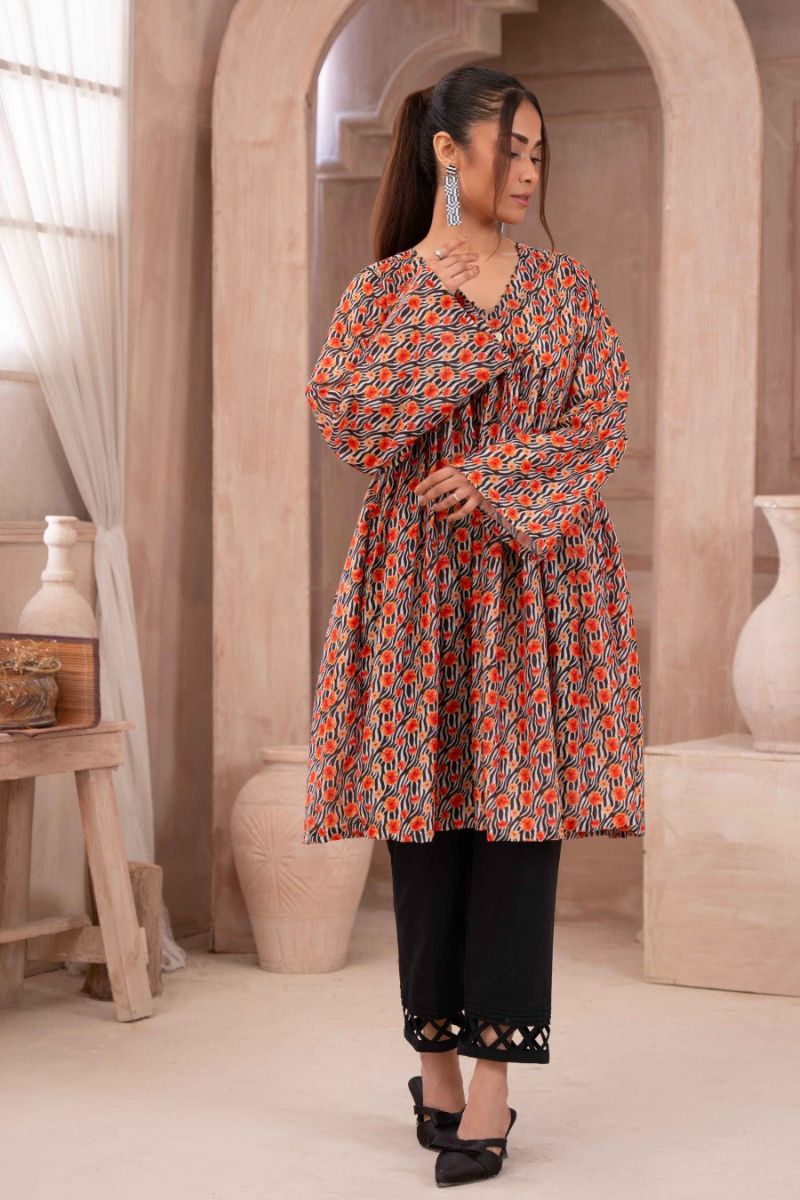 Zebra blooming article is a digital print 2Pc. It features a printed gathered frock with a V-neckline, straight sleeves, and a stylish tassel. These are paired with plain straight black pants.