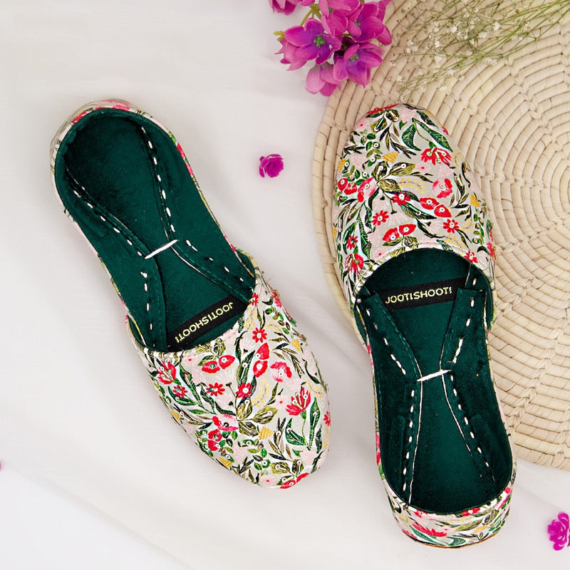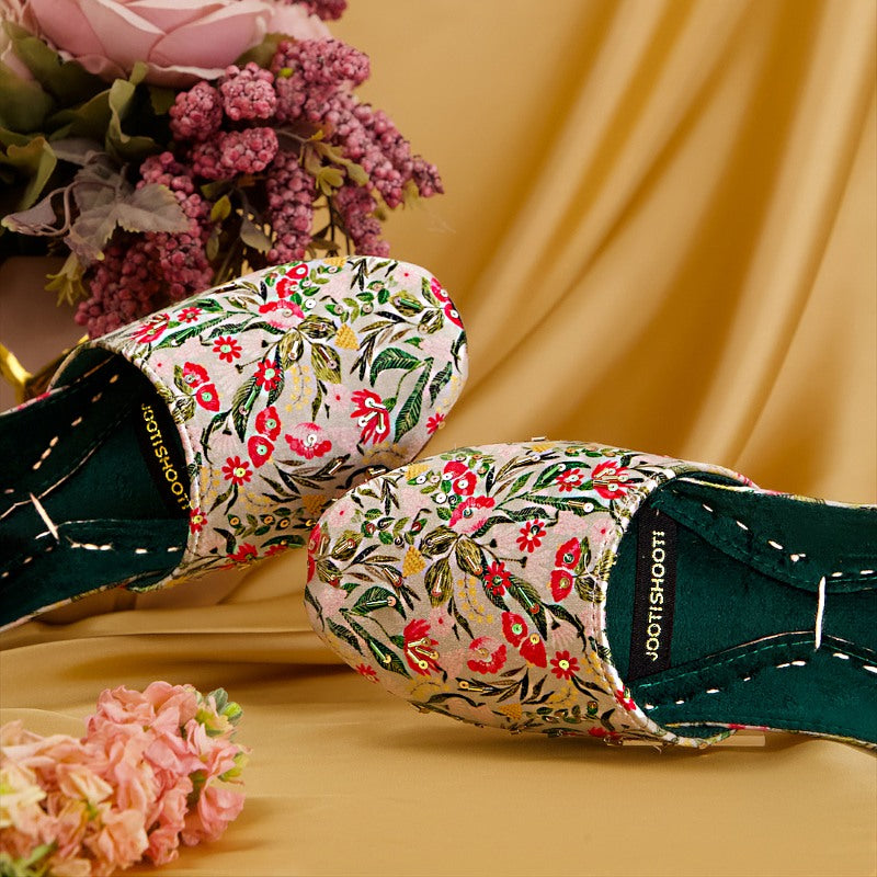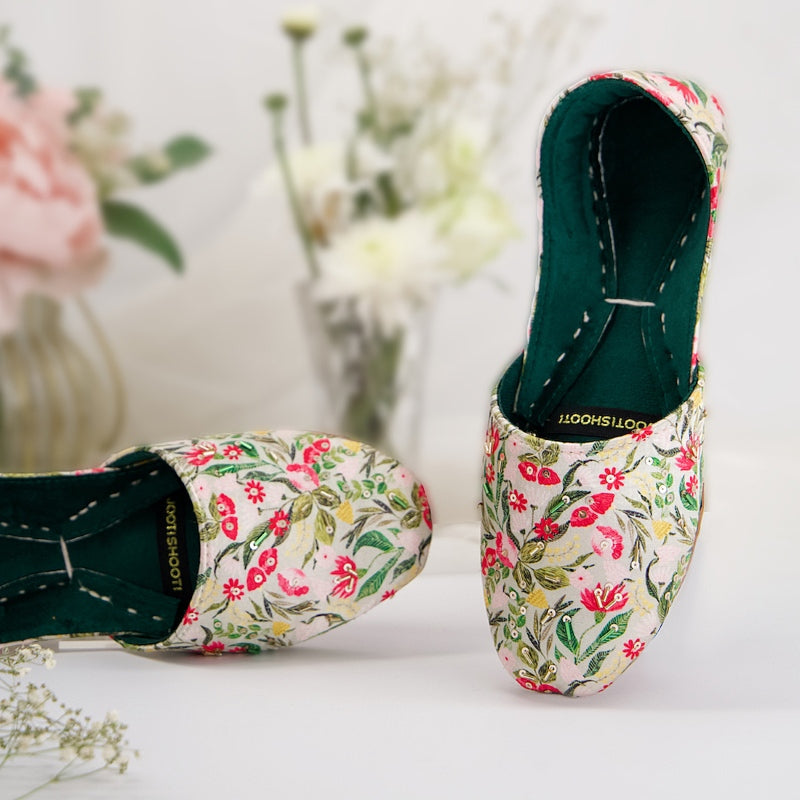 Step into a garden of style with our Baghicha Nawabi Khussas! These handcrafted ethnic flats feature a vibrant floral print that will add a touch of elegance and charm to any outfit.