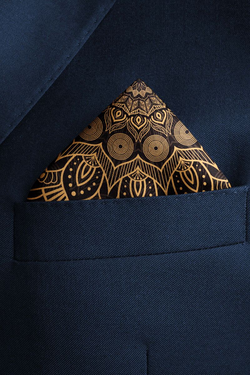 Black Wolf - BLACK AND GOLD ORNAMENT SILK POCKET SQUARE - BLACK - SILK - 1 Piece