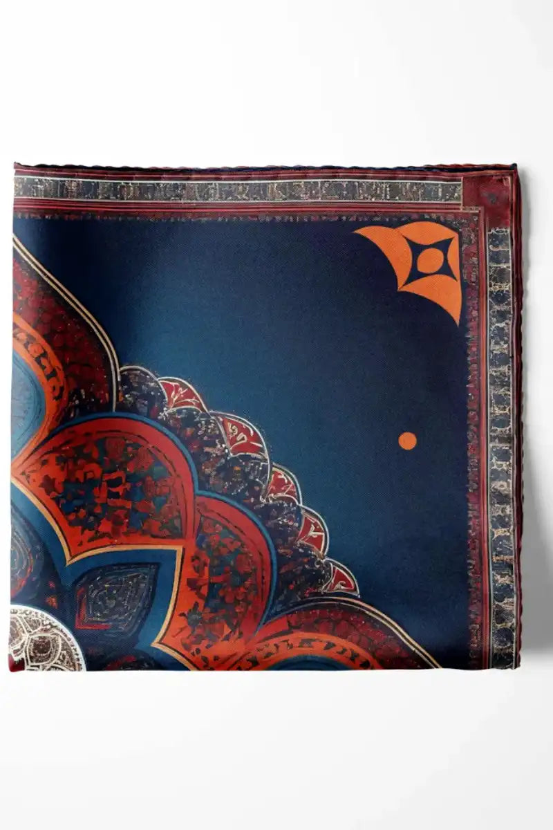Black Wolf - ROYAL AJRAK SILK POCKET SQUARE -  Navy Blue - SILK - 1 Piece