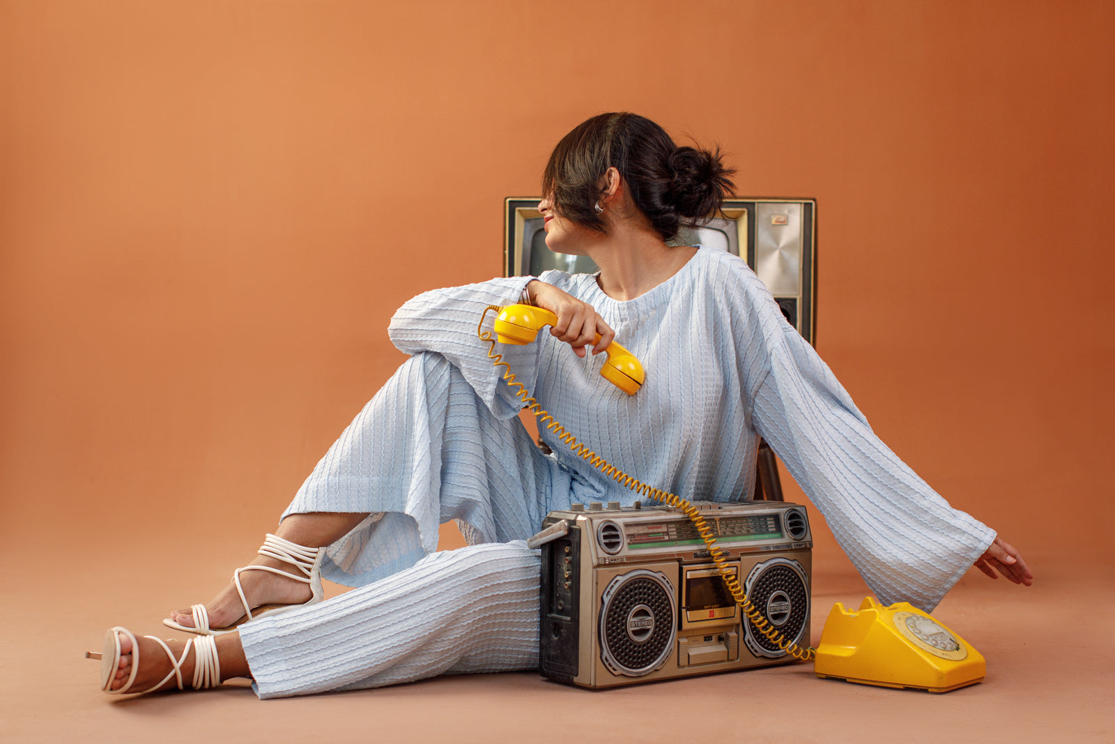 This sky hour co-ord set from Ombrella is your go-to for modern comfort. Featuring a relaxed-fit bell-sleeve top and wide-leg pants, the soft textured fabric drapes beautifully while keeping things casual yet refined.