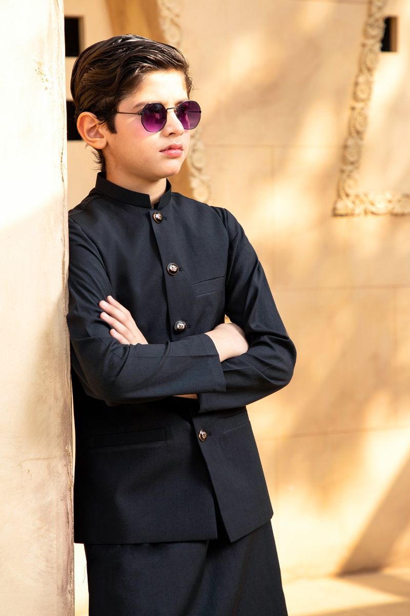 Description: Crafted from premium wash & Wear Fabric, Features a classic Kurta, Matching straight trousers and a traditional, matching waistcoat. This is a 3 piece stitched outfit.
