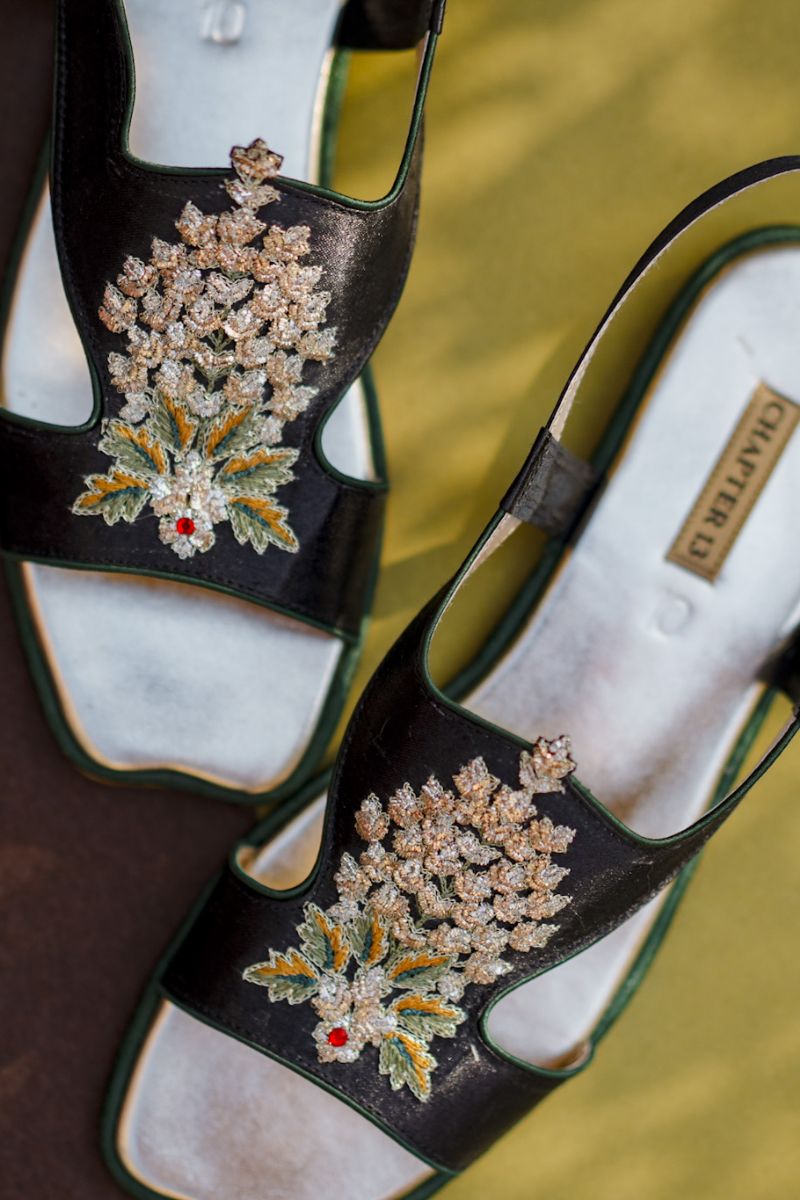 Step out in style with Kohati - the perfect fusion of elegance and quirkiness. Made of black silk and hand embroidered with naqshi, dabka, and resham thread, this shoe features a beautiful floral motif and bottle green piping for a finishing touch. Complete with a fully cushioned insole for ultimate comfort. Perfect for any formal occasion! Upper: Silk Bottom: Rexene and Anti Skid Sheet Sole Please note: Due to the handmade nature of the collection and professional photography lights; colors, and/or patterns may vary slightly from the image shown. Minor differences enhance the beauty and uniqueness of each style
