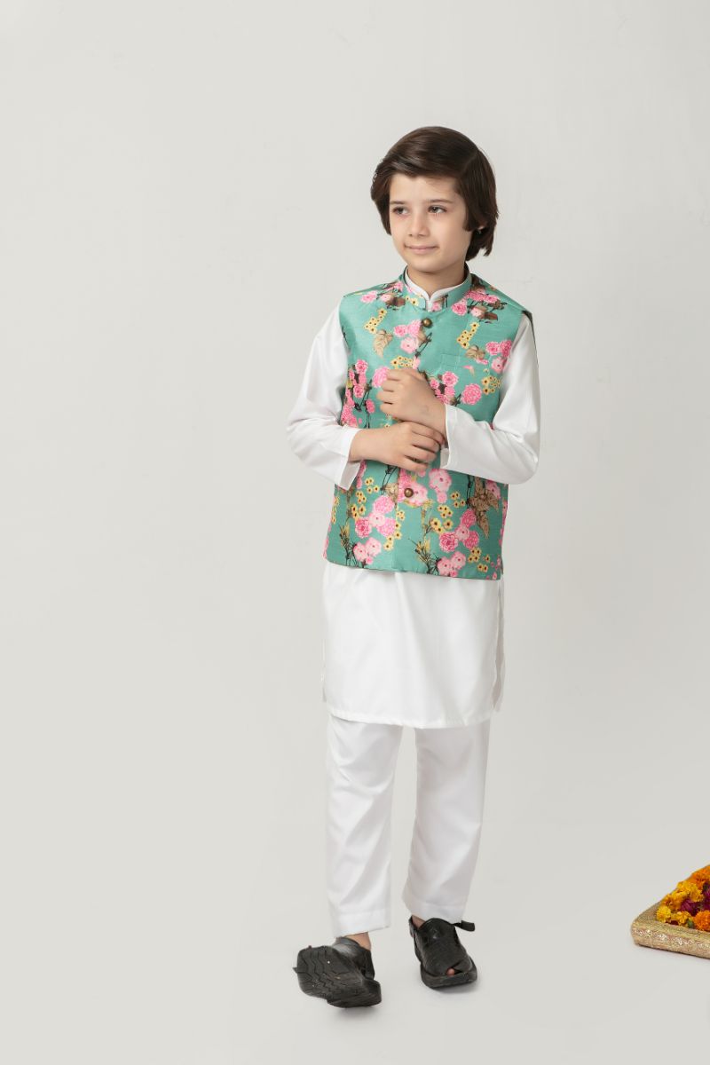 Cheeco Chic - SGFWC24 - sea green - raw silk floral - waistcoat - 1 piece