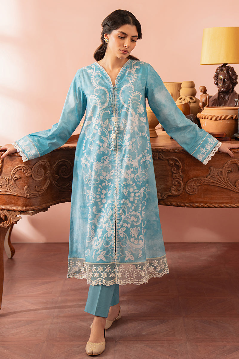 UNSTITCH 2PC: CAMBRIC DIGITAL PRINTED SHIRT 40 EMBROIDERED PATTI FOR SHIRT HEM AND CAMBRIC DYED TROUSER