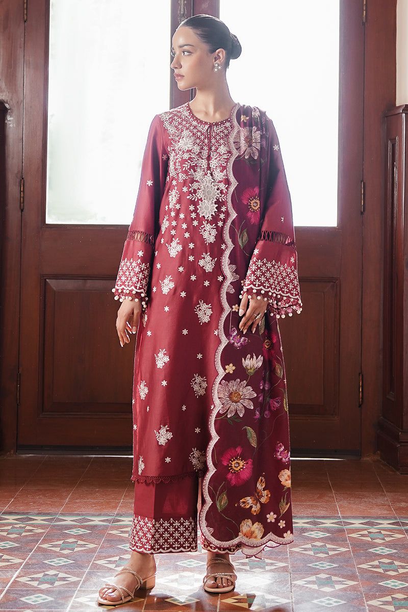UNSTITCH 3PC:100% COTTON SATIN EMBROIDERED SHIRT FRONT AND SLEEVES,DYED BACK,CAMBRIC DYED TROUSER AND DIGITAL PRINTED DUPATTAThanks for subscribing!