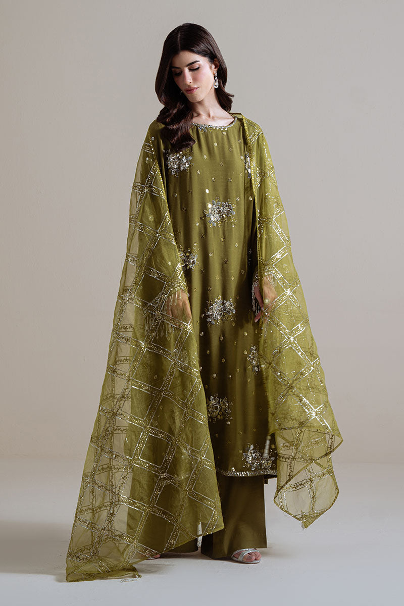Cross Stitch - Gleam Luxe Green Unstitch Suit For Women - 3 Piece