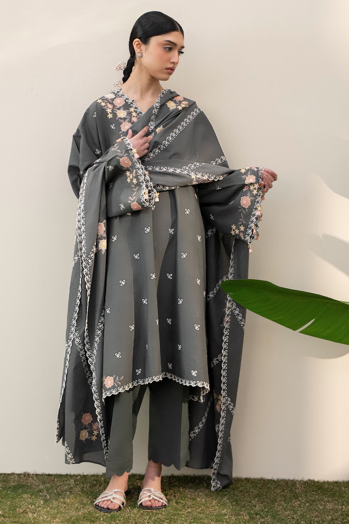 UNSTITCH 3PC: LAWN EMBROIDERED FRONT,BACK AND SLEEVES,CAMBRIC DYED TROUSER AND LAWN EMBROIDERED DUPATTA