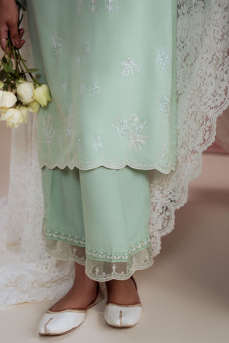Elevate your wardrobe with this sophisticated two-piece ensemble crafted from luxurious silk. The shirt features a refined straight fit with an ornate sequin-embroidered front, while the back showcases a pristine dyed finish. A crew neckline adorned with a delicate slit and tassel detail adds contemporary flair, complemented by intricately embroidered flared sleeves with subtle slits. The coordinating silk trouser is expertly dyed and embellished with embroidery, creating a cohesive, polished look. Perfect for elevated occasions, this set combines traditional craftsmanship with modern silhouettes for timeless elegance.