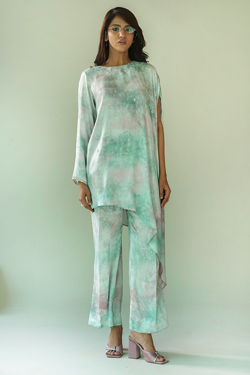 Gul E Noor - Pearl Hue - Pink Green grey - Butter Silk - 2 Piece