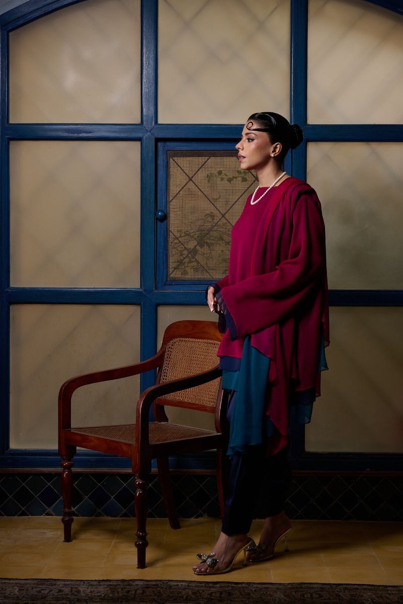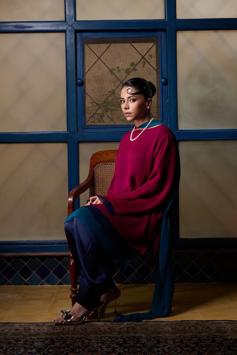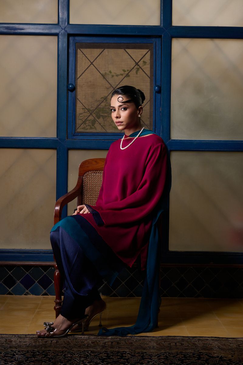Gulabo - BERRY STUNNA - Blended Chiffon + Satin Silk - Fuchsia/Navy/ Emerald - 3 PieceGulabo - BERRY STUNNA - Blended Chiffon + Satin Silk - Fuchsia/Navy/ Emerald - 3 Piece