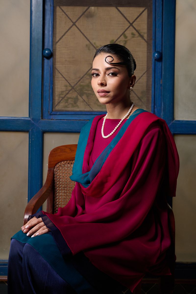 Gulabo - BERRY STUNNA - Blended Chiffon + Satin Silk - Fuchsia/Navy/ Emerald - 3 Piece