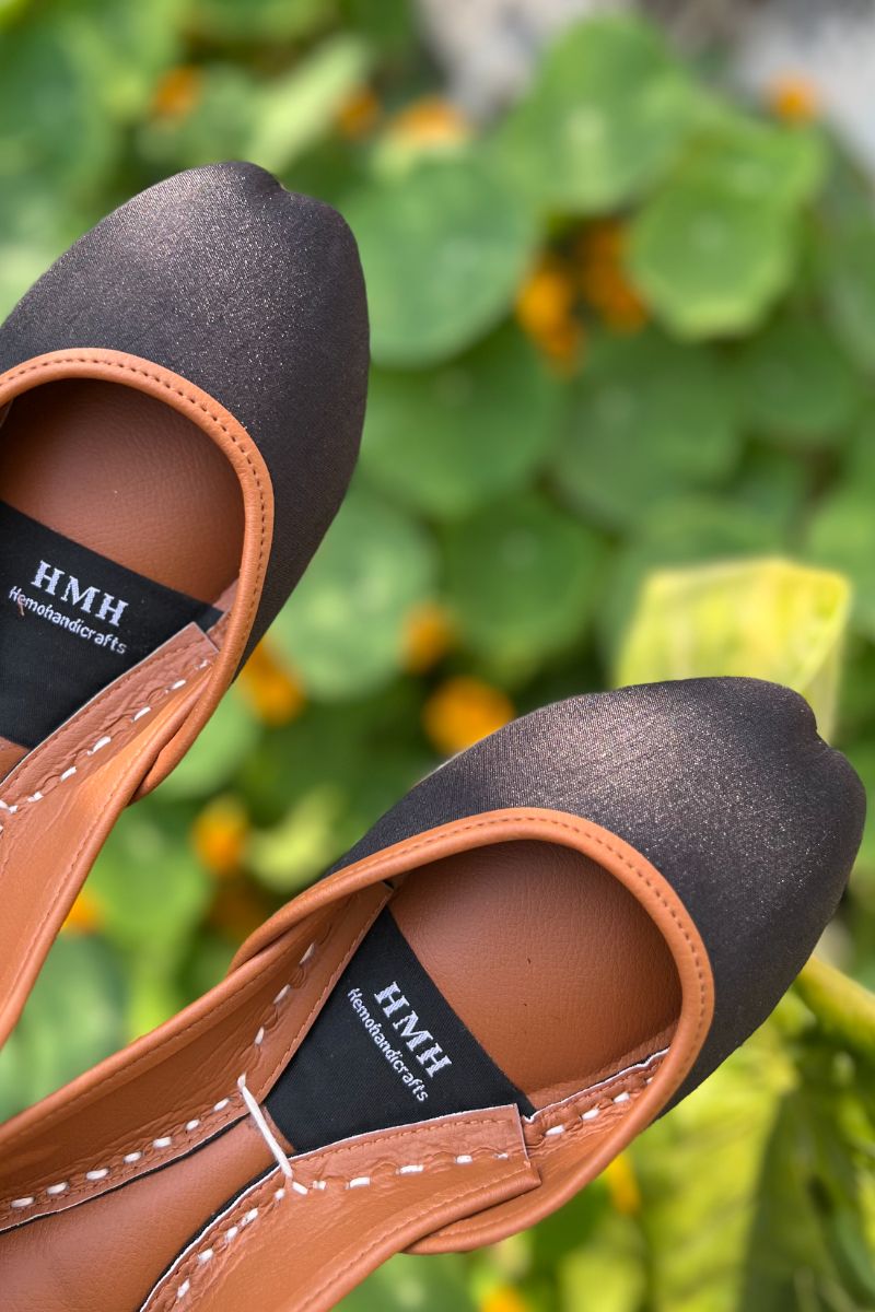Dark Dusk-Black Raw Silk Khussa, soft, double padded, durable sole.