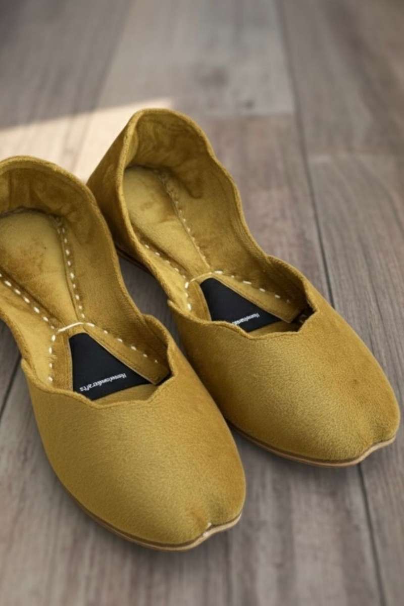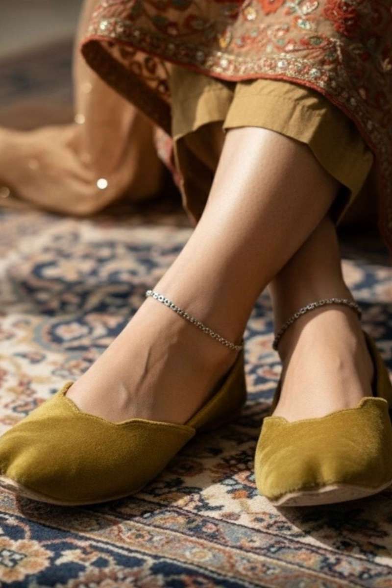 Experience the height of both opulence and comfort with these striking Lime Green Velvet Khussa shoes. These loafers elevate your style with their vibrant, monochromatic color and luxurious plush velvet texture, which covers the entire shoe, including the unique matching velvet sole. Crafted entirely from this soft fabric, the plain back and plain upper create a sophisticated, minimalist design that allows the rich color and beautiful silhouette to take center stage. Designed for superior, lasting comfort, these khussas are built to be soft, comfortable, and easy to wear, featuring a double-padded sole and back for exceptional cushioning.