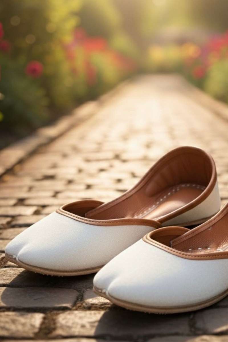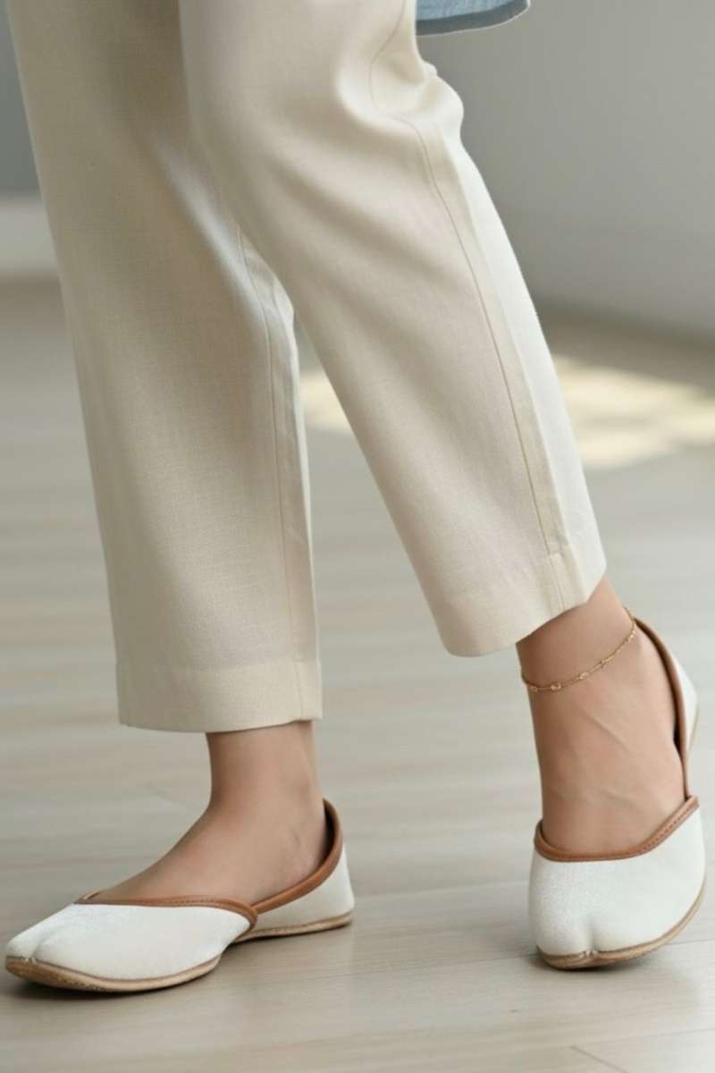 Snow Petal-White Velvet Khussa which is soft, double padded, durable sole.