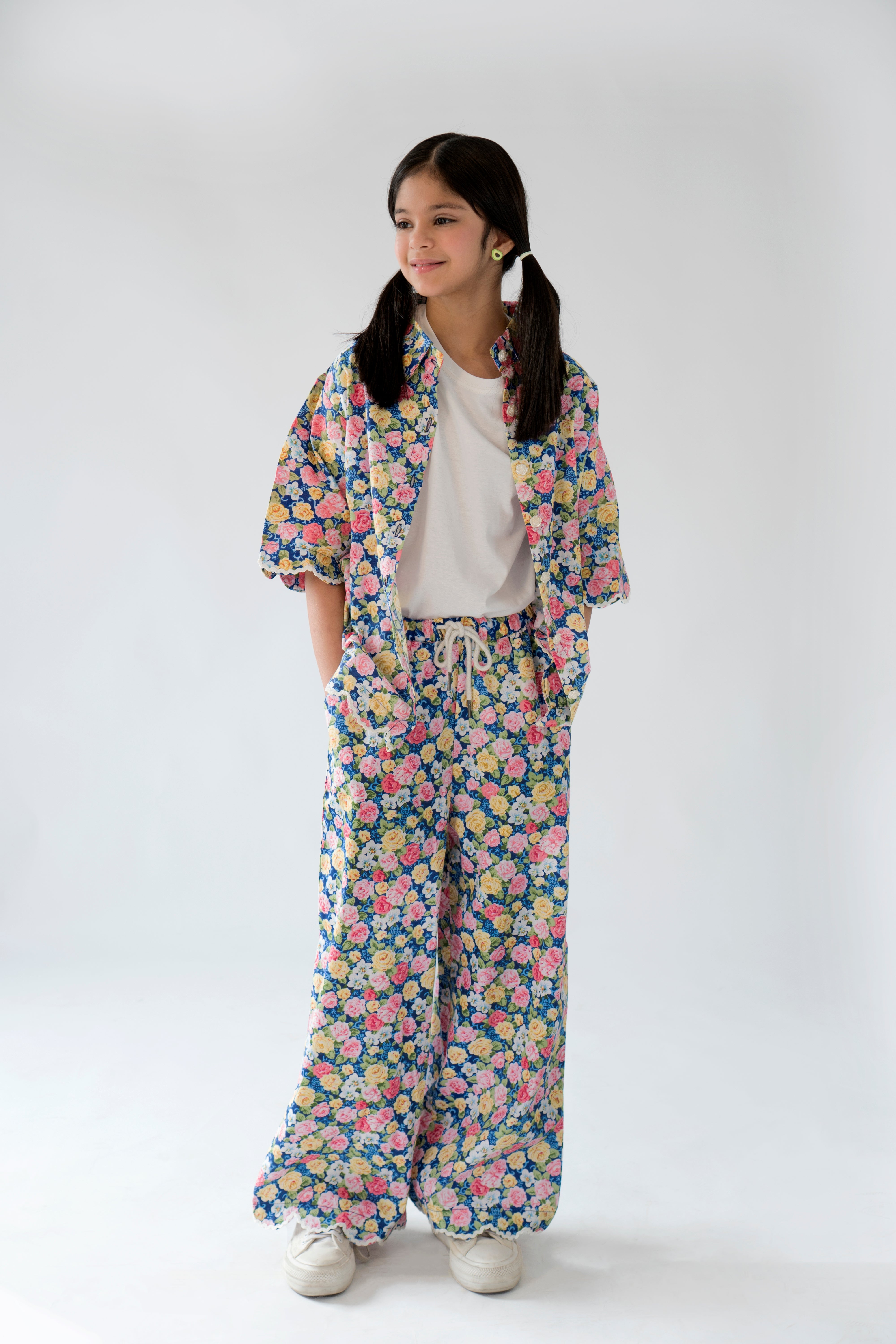 Bright, breezy, and full of floral energy, our Floral Rush Co-ord Set is designed for easy summer days and bold style moments. Crafted from breathable cotton lawn, this two-piece set features a relaxed button-down shirt and wide-leg pants, both adorned with a vibrant all-over floral print.