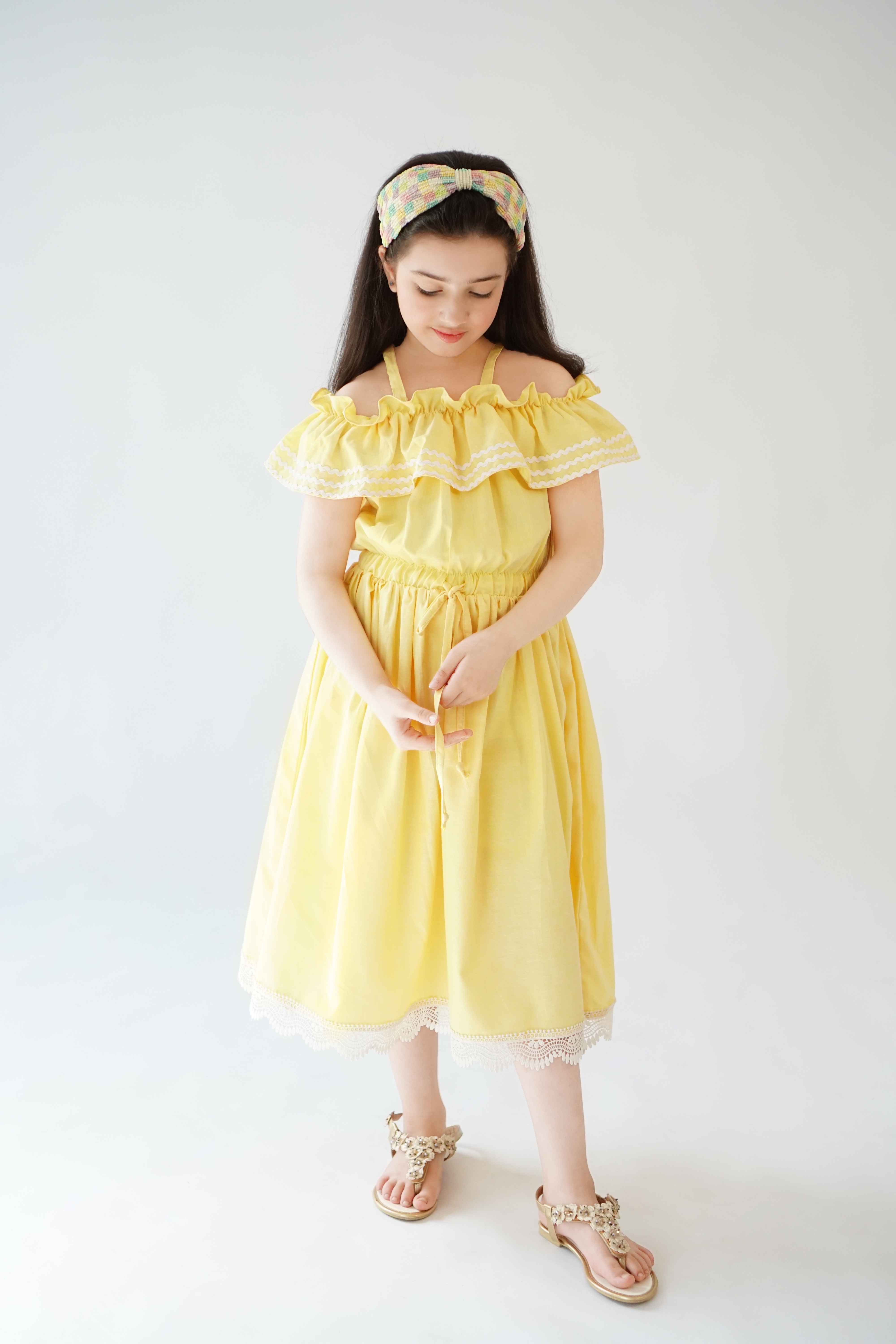 This stunning dress is sure to make a wondrous addition to your youngster’s repertoire while reflecting her sunny disposition.