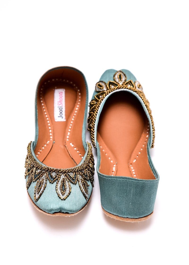 Printed silk khussa beads, sequins and thread work, crafted with love and care. Maintaining the exclusivity, each pair is unique and one of a kind. With skilled craftsmen behind each pair€™s fabrication process, from shoe making, design sketching to hand-work, JootiShooti promises to be a treat for your feet. Details: Upper -Silk Back - Silk Sole - Leather Padding - Double Cushioning for comfort Make: Handcrafted in Pakistan Care: Super easy to clean! Wipe with a sliglty damp cloth to clean off any dust.