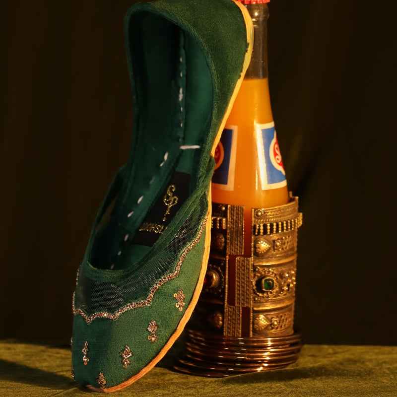 Regal and refined with a crown inspired motif at the toe of the khussa and tiny buti across the upper. Finished with subtle zari edging, cushioned inside, and a flexible leather sole for day to night wear.