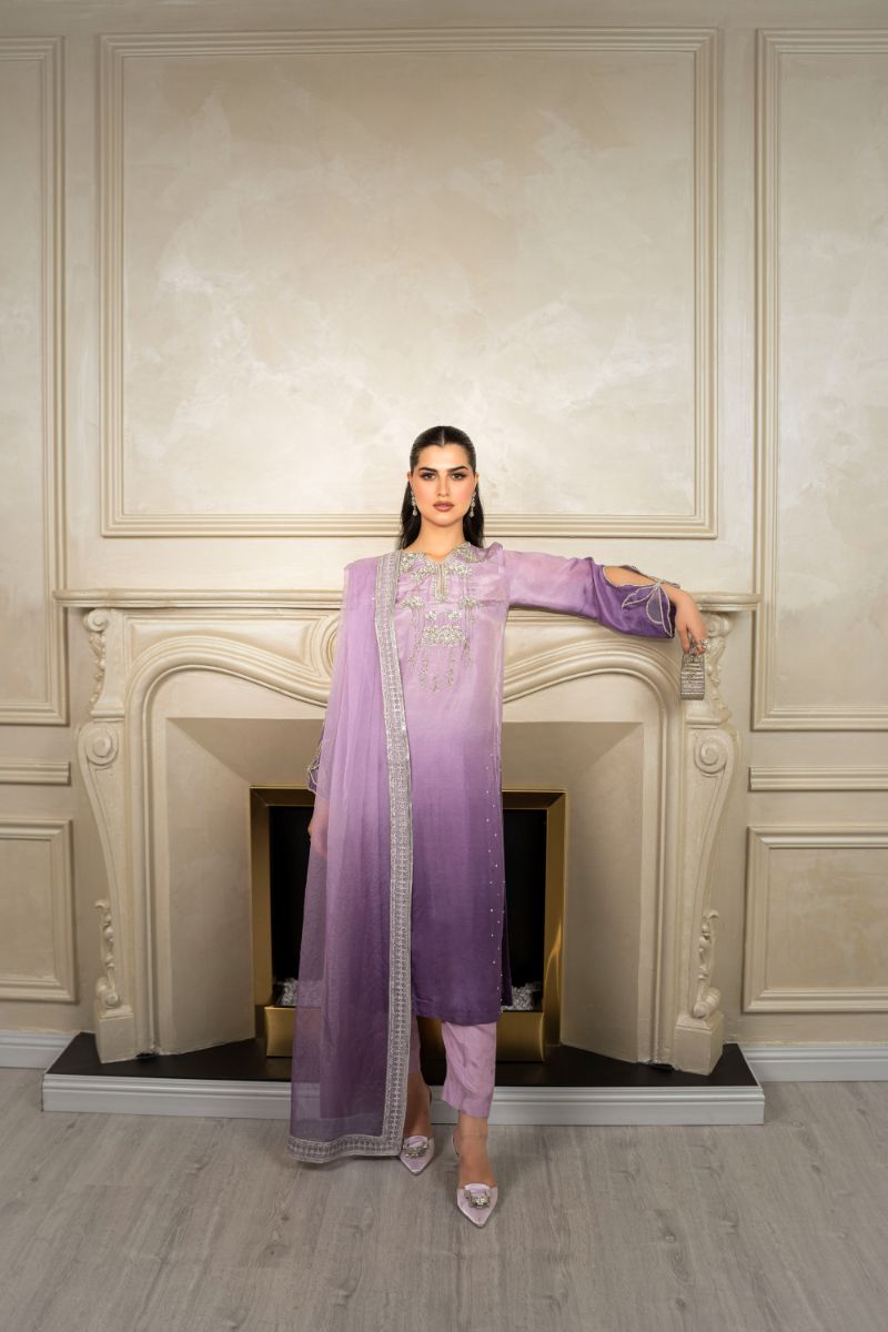 Elevate your wardrobe with our stellar lilac two-toned outfit, "Stella"! Crafted from pure sheesh silk, this shirt features playful hand embellishments at the neckline and whimsical bow sleeves. Sprays of pearls and stones add a touch of sparkle that catches the light and turns heads.