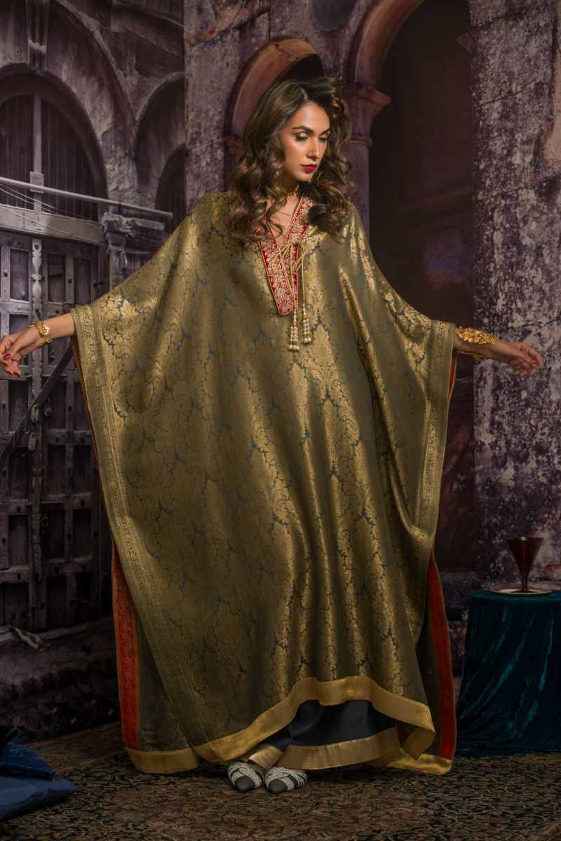 Maheen Khan - MARRAKESH - Kaftan - Grey Gold - Pure Silk Brocade - 2 Piece