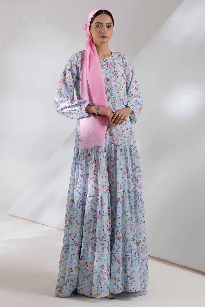 Spring Bliss maxi in light blue chiffon blends charm and comfort with it is tiered flared design for graceful movement. A soft round neckline with button-down detailing and a separate belt allow easy waist styling. A dreamy pick for brunches, day events, or casual elegance.