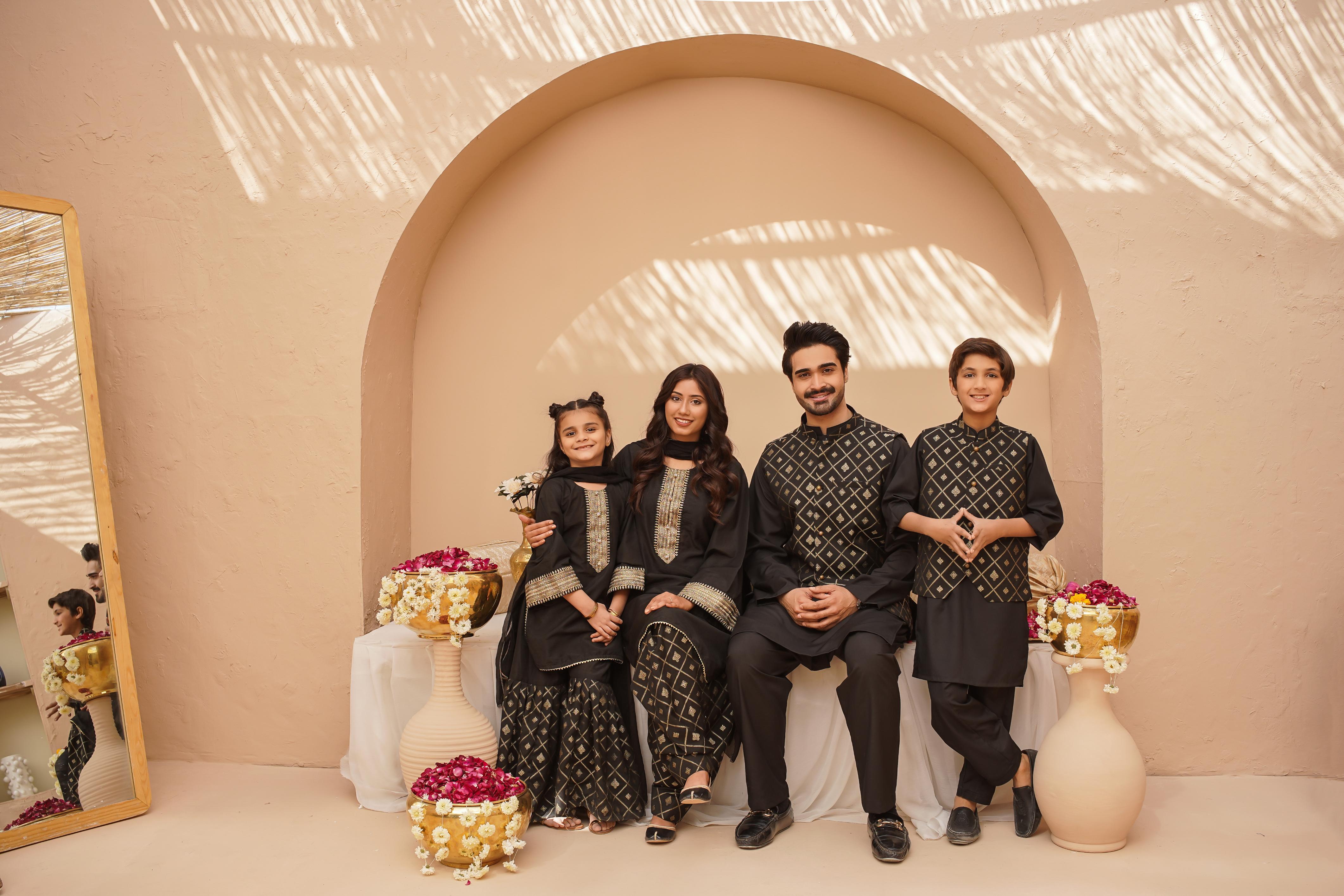 Elevate your traditional wardrobe with this sophisticated Men’s Three-Piece Ensemble. The black printed jacquard waistcoat, adorned with exquisite gold button detailing, exudes timeless charm. Paired with a black wash-and-wear kurta and pajama, this set offers both comfort and class, making it ideal for festive occasions, weddings, or formal gatherings.