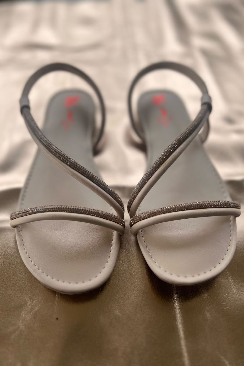 Spice up your casual look with these diamente embellished sandals! Featuring a strappy design in dull gold and cushioned insole, these light weight sandals are perfect for all-day wear with a hint of bling. Get ready for some easy, breezy style!