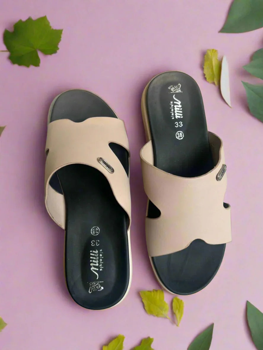 Step into everyday comfort with these playful nude color casual slides. Featuring a stylish X-cut pattern for a trendy look, these slides provide arch support with a cushioned insole and a mid wedge heel that offers just the right lift. Perfect for adding effortless style and comfort to your daily routine, they come in the best versatile color to match any outfit.