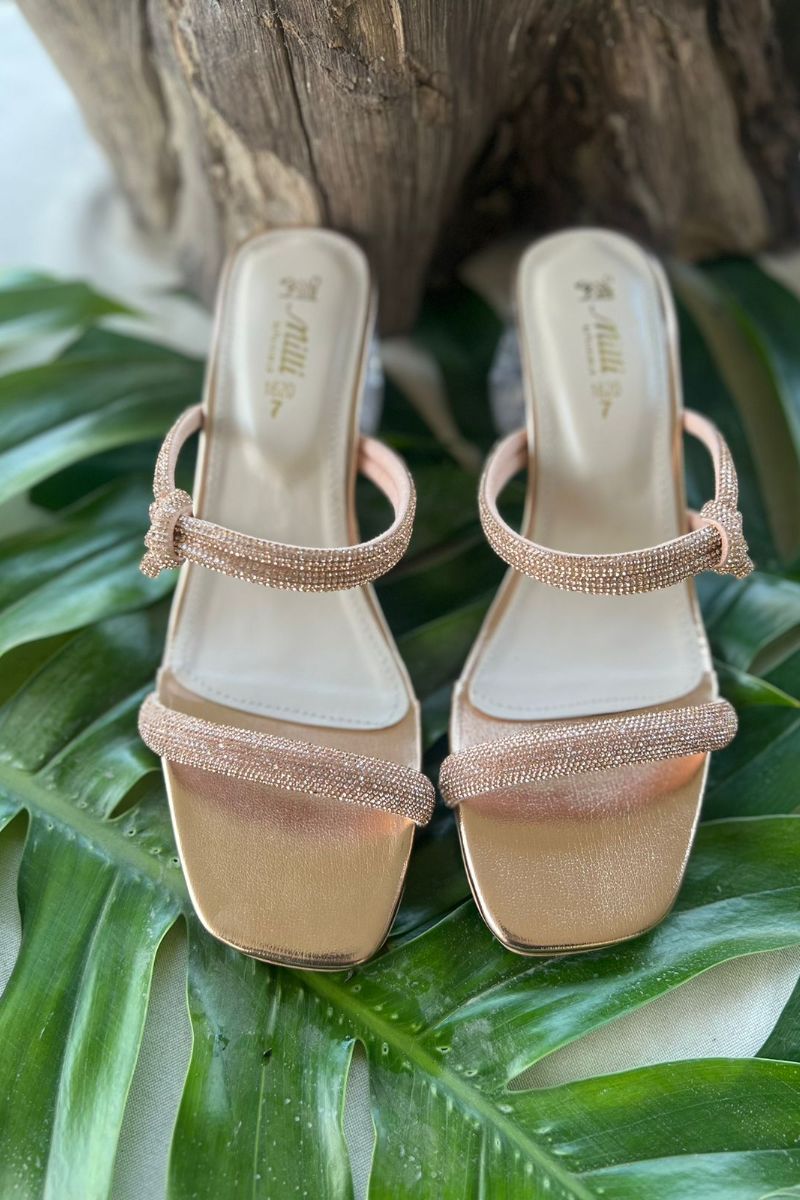 MILLI SHOES - Silver Double-Strap Embellished Sandals - Heels - Rose Gold - 1620
