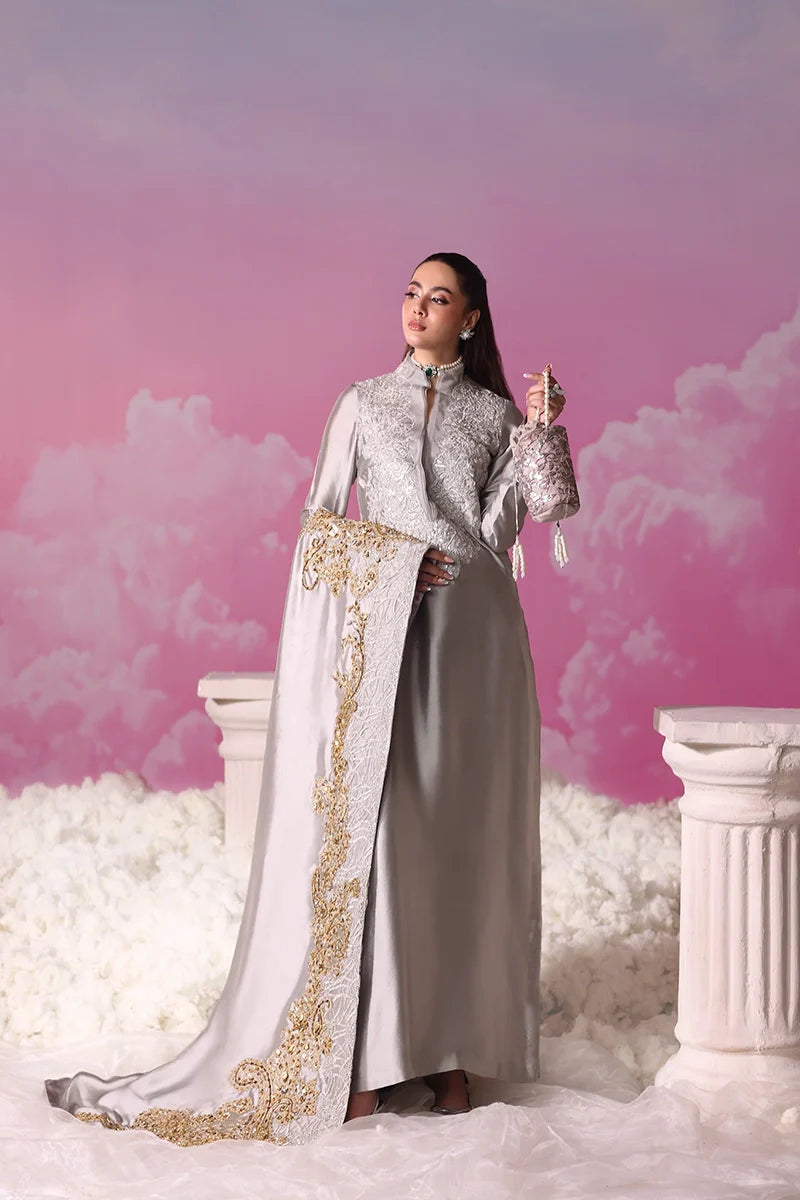Musferah Saad’s atelier devoted long hours of research and artisanal handwork to perfect Lunar Mist, creating an ensemble that embodies celestial grace and couture craftsmanship.