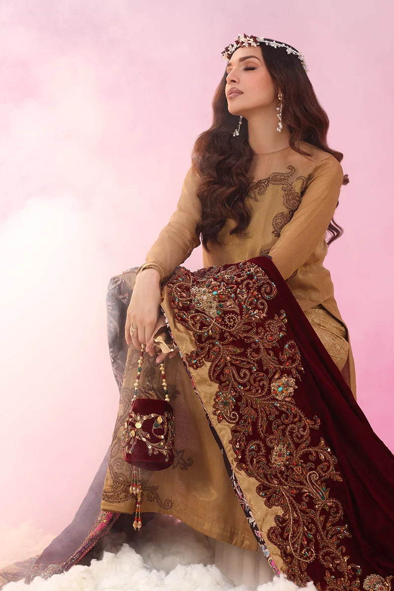 Long hours of research and intricate handwork by Musferah Saad’s atelier culminate in this creation, a true testament to couture mastery and luxury craftsmanship.
