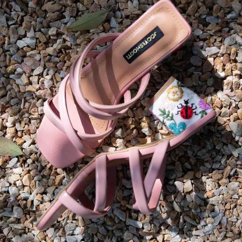 Introducing Mystical Garden - where elegance meets whimsy in the perfect summer pair! These nude pink strappy heels exude charm and sophistication, ideal for any summer occasion. The square white heels are adorned with delicate threaded embroidery featuring enchanting floral and ladybug motifs, adding a touch of magic to your every step. Complemented by a nude insole and nude pink toe and rand, this pair is truly one of a kind, capturing the essence of a secret garden in full bloom. Step into Mystical Garden and let your style blossom with every stride.