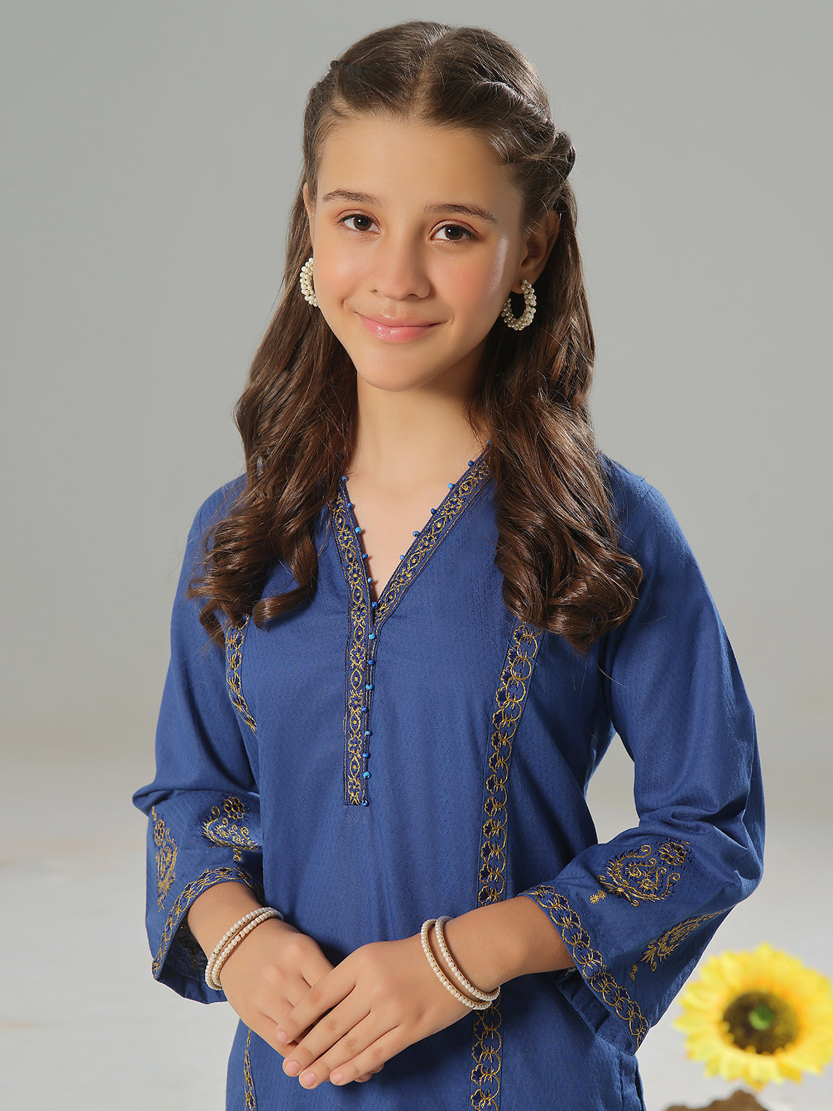 Oaks - Embroidered Pret Shirt Trouser Dobby Blue - 2 Piece