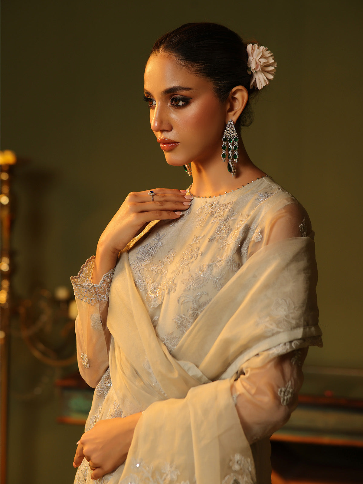 Oaks - Embroidered Pret Suit Organza Grey  - 3 Piece
