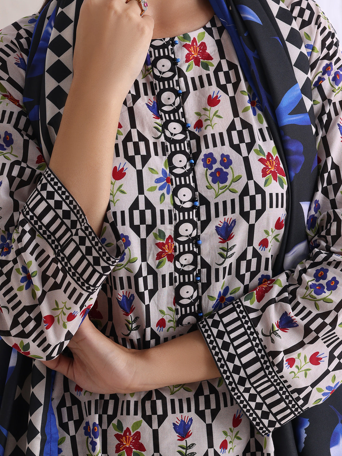 Oaks - Lawn Suit For Women - Black - 3 Piece