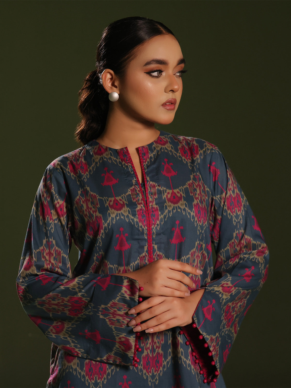 Oaks - Printed Pret Shirt Trouser Cambric Blue/Pink  - 2 Piece
