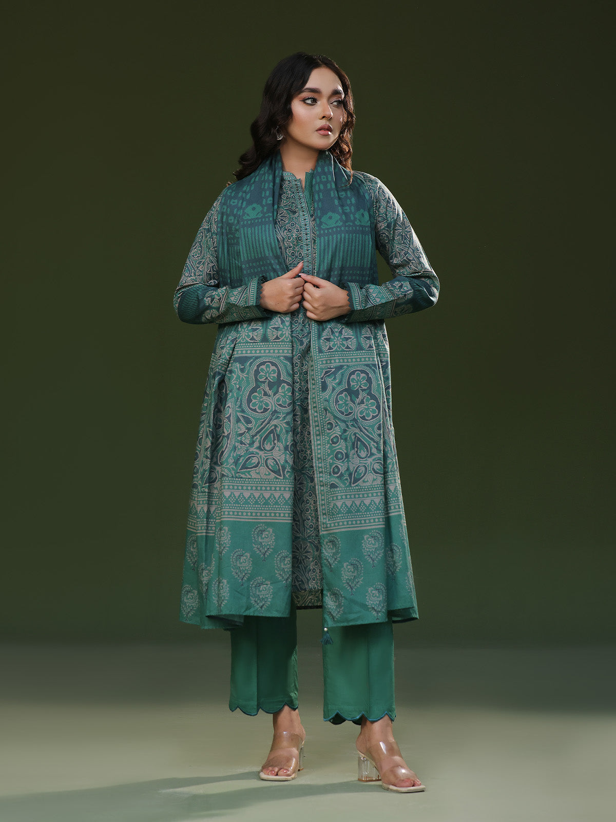 Oaks - Printed Pret Suit Cambric Green - 3 Piece