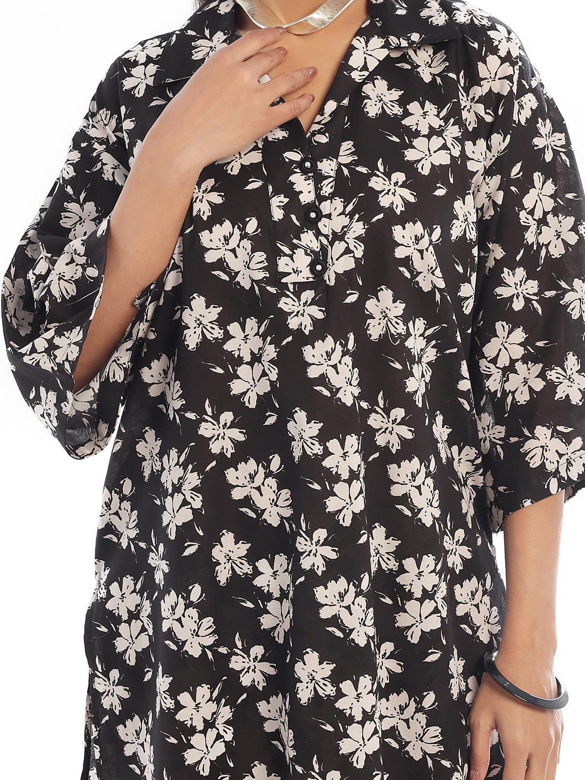 Oaks - Printed Pret & unstitched Shirt Trouser Swiss Lawn Black - 2 Piece