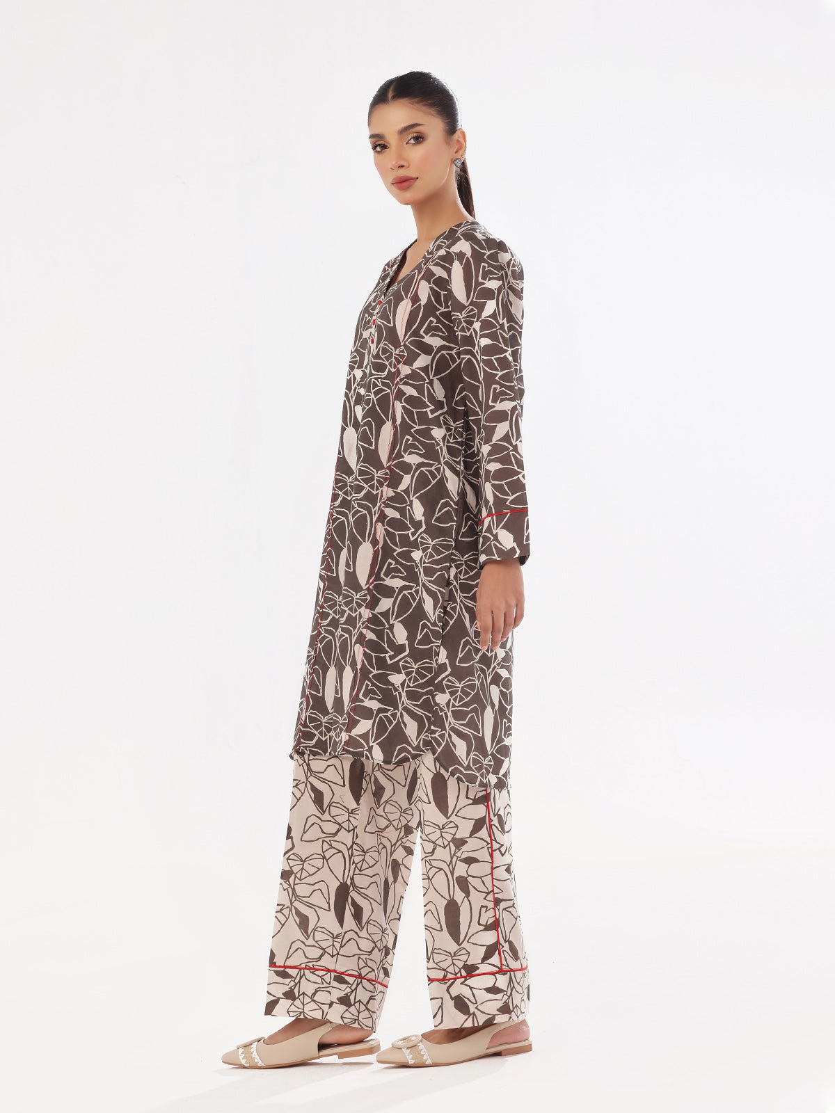 Oaks - Printed Pret & Unstitched Shirt Trouser Swiss Lawn Grey - 2 Piece