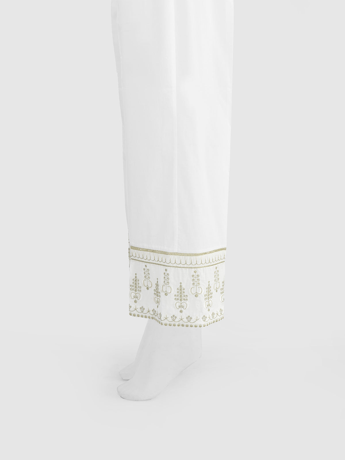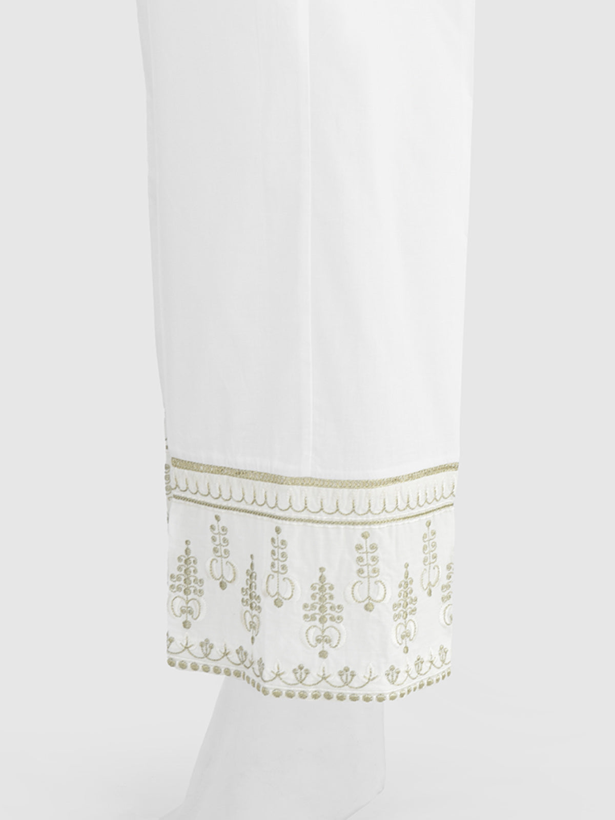 Oaks - Women White Cambric Embroidered Trouser - 1 Piece