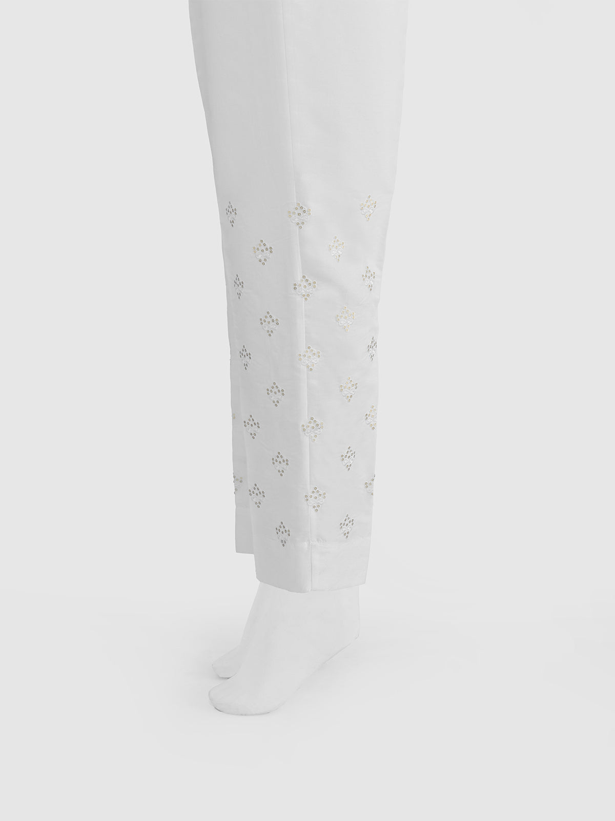 Oaks - Women White Cotton Silk Embroidered Trouser - 1 Piece