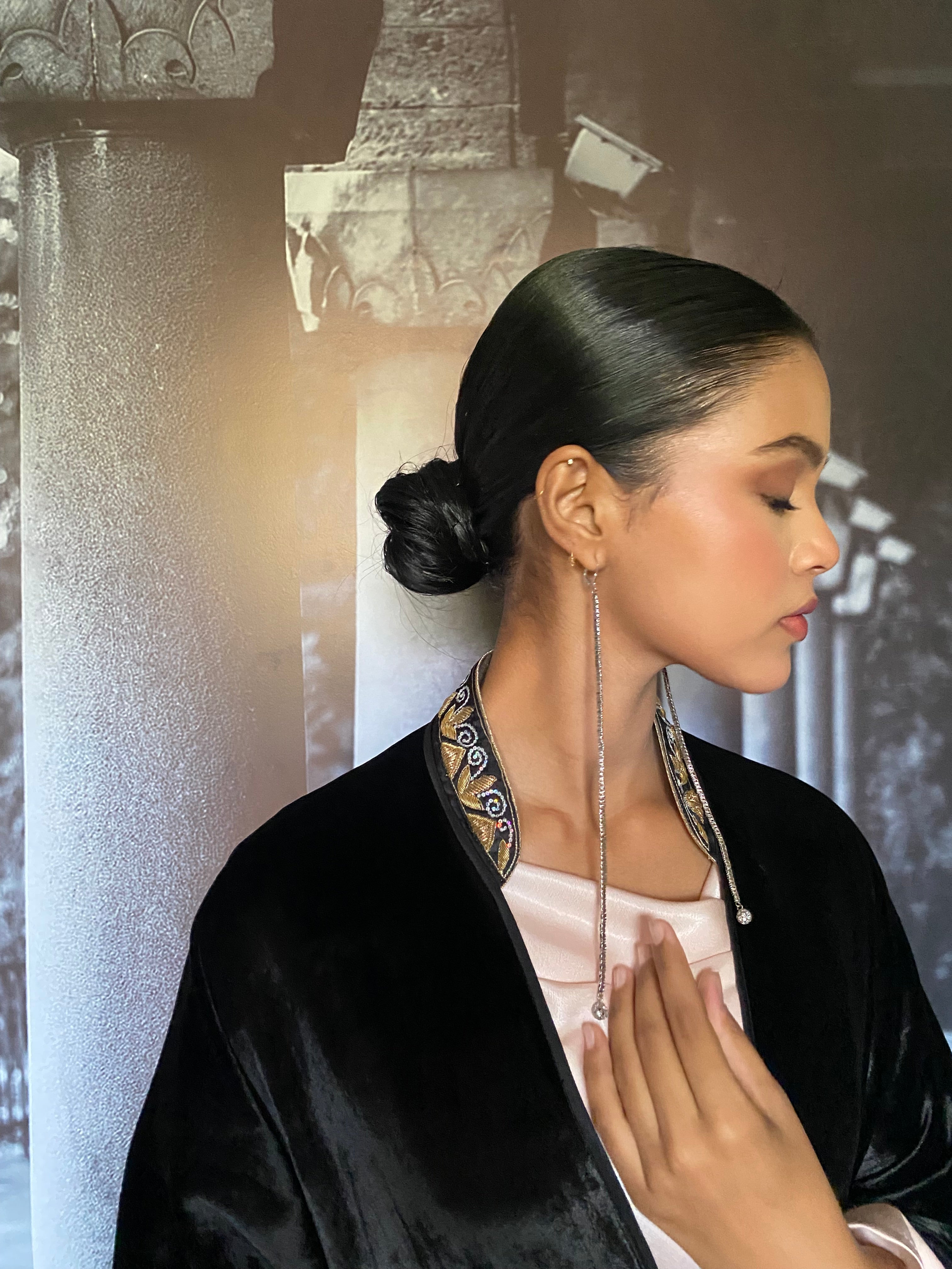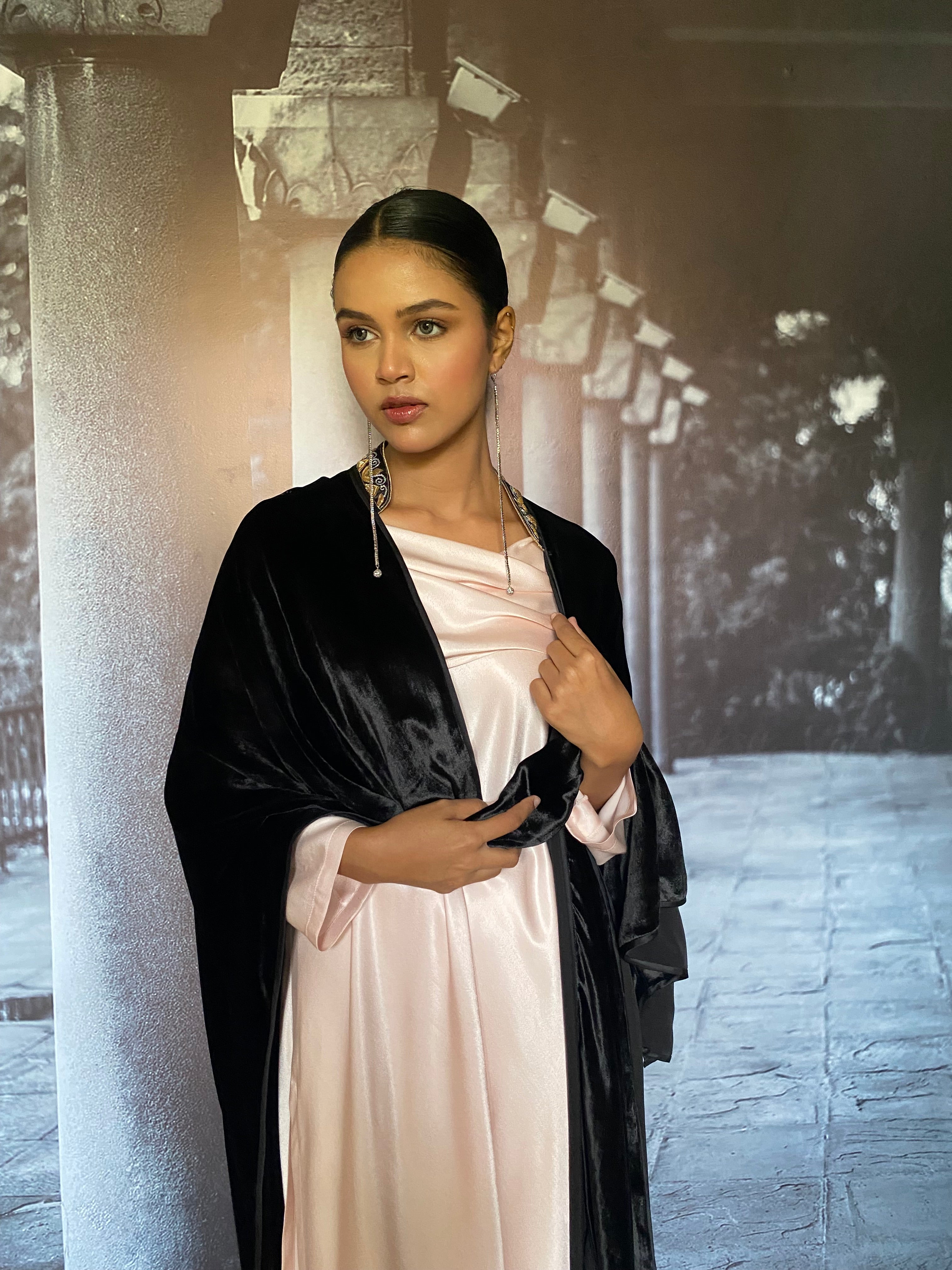 Gulabo - Ameera Silk Velvet Black Cape Jacket For Women - 1 Piece